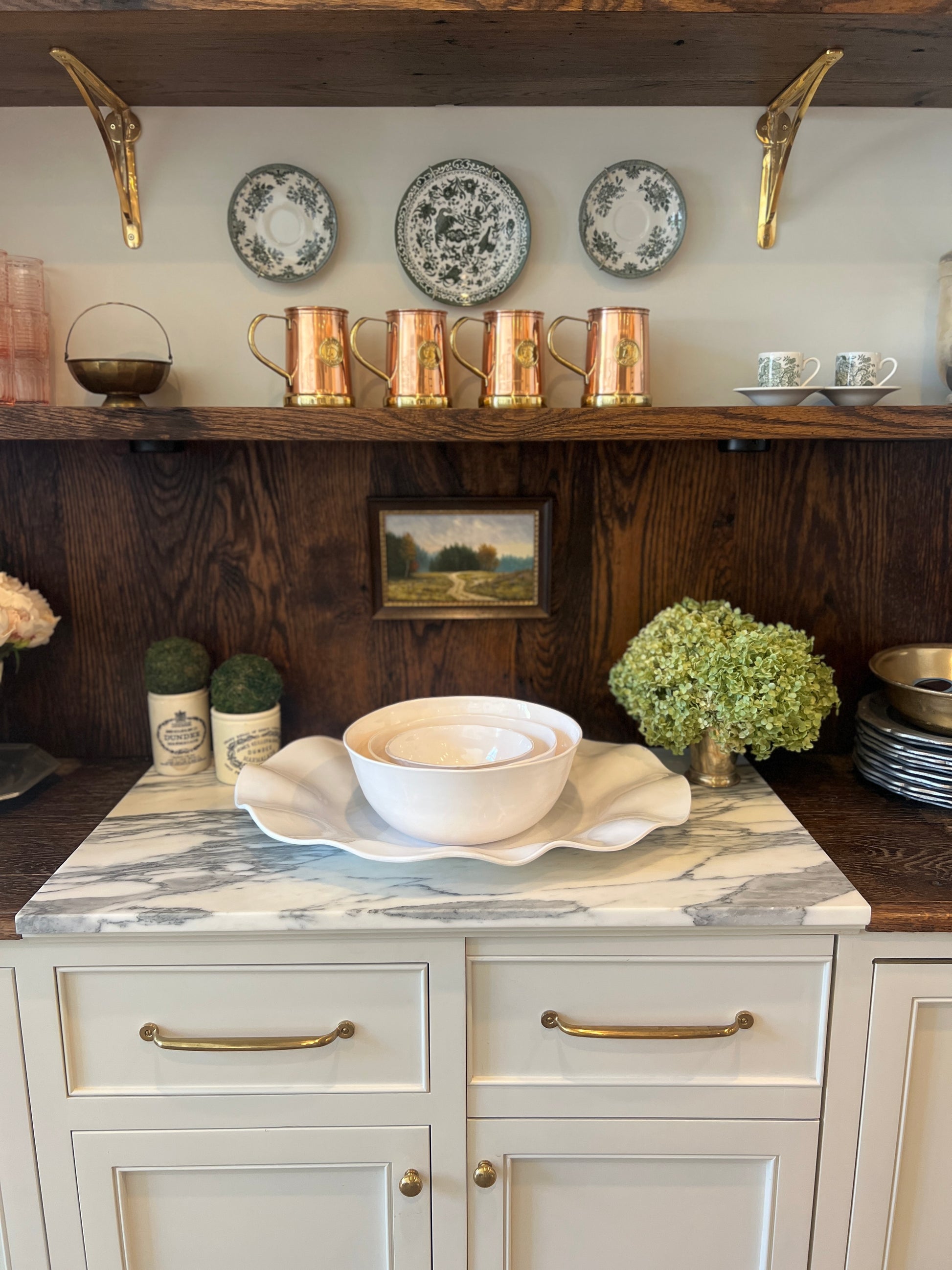 You will see the large 11” British pottery bowl and the 11” mixing bowl sitting on top of the tray in the pictures as a size reference.