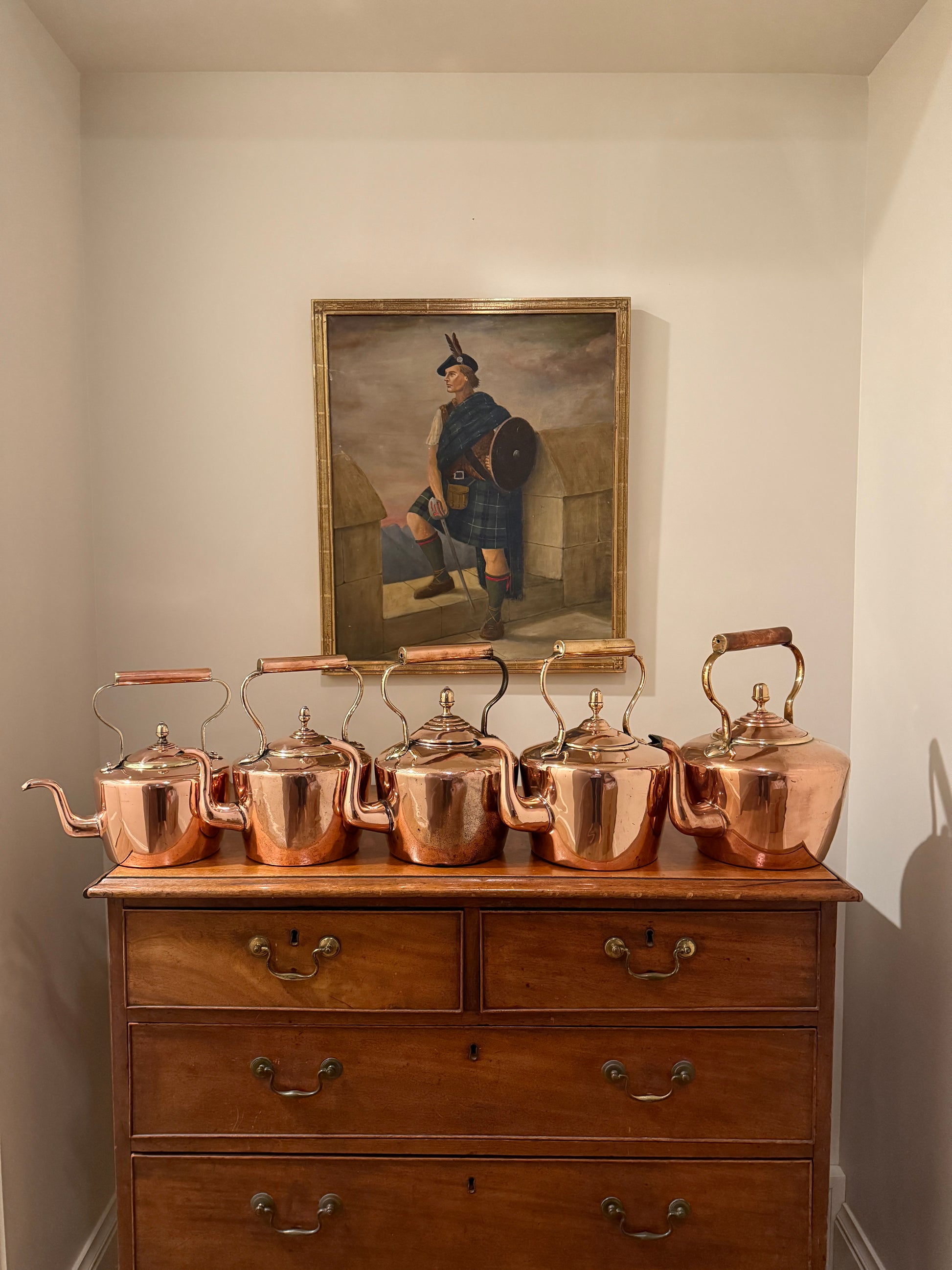 Various 19th century copper tea kettles in antique condition! Found in the Cotswolds, England. For display/decor use only. To use these for boiling water, I would recommend re-tinning the inside. Message me for a picture to choose from what is available!