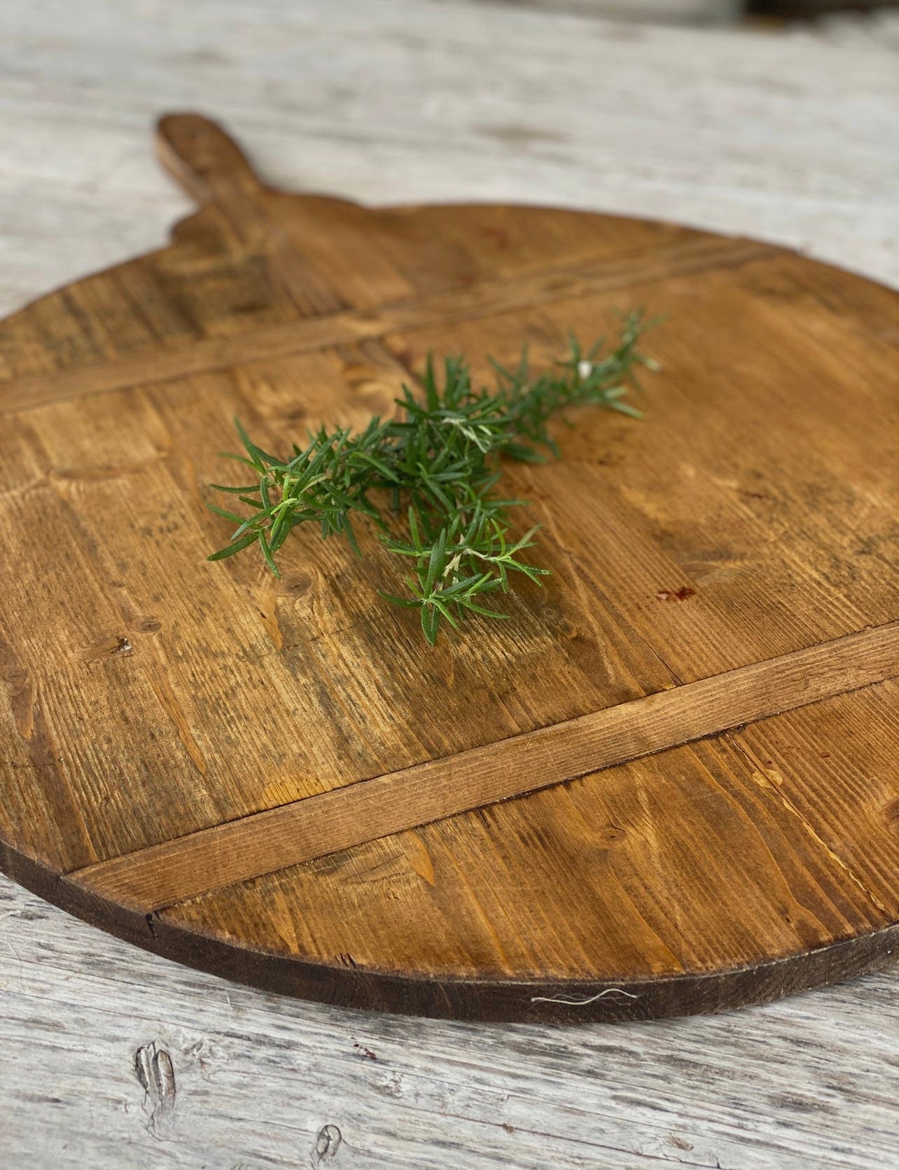 Important note: These are made from reclaimed European board planks that were made to make and dry cheese in European cheese factories. Each board is a one of a kind. There will be variation in the wood, some darker, some lighter. Some with more patina, knots, texture & residual red wax from labels, some with less.