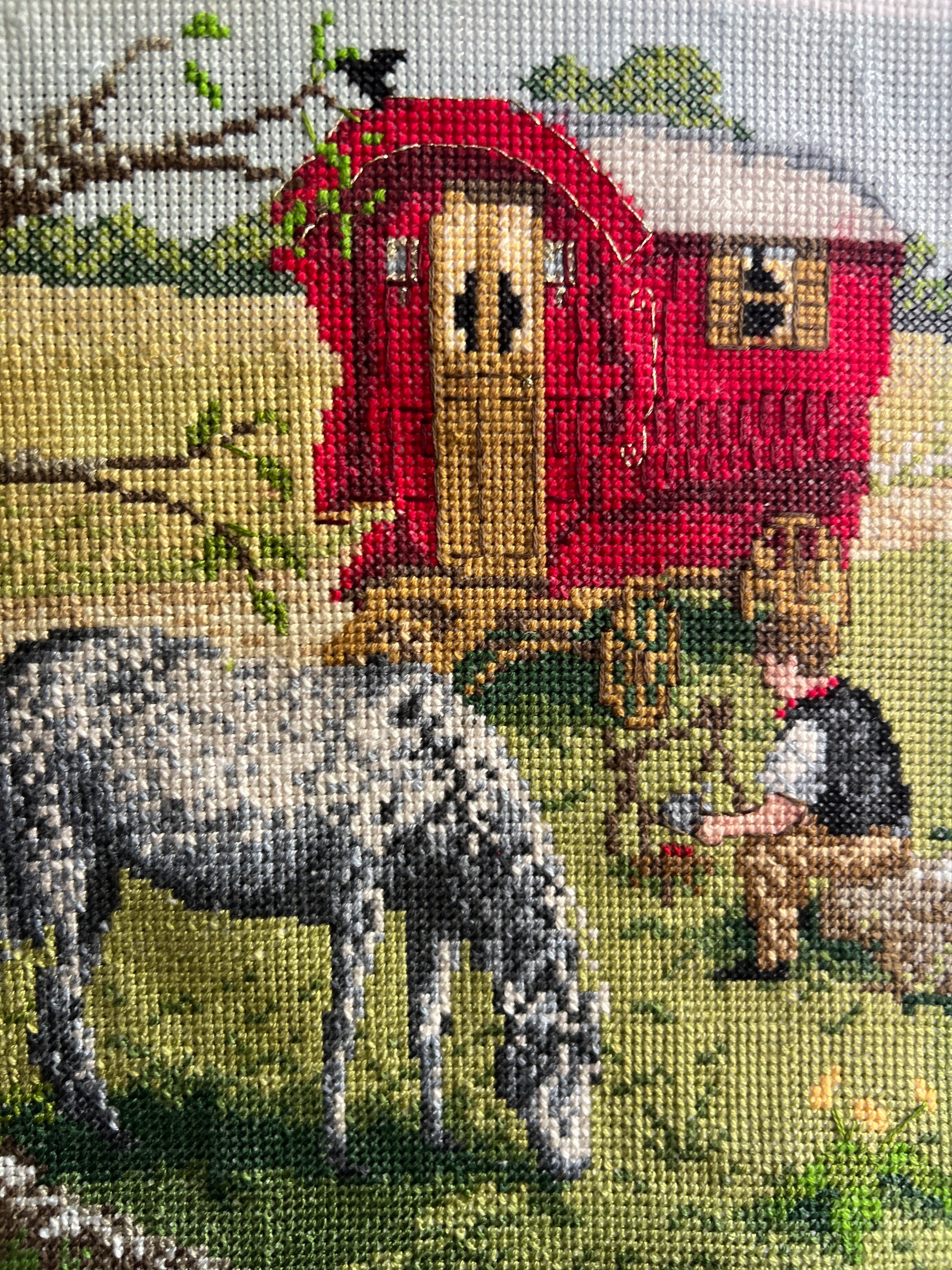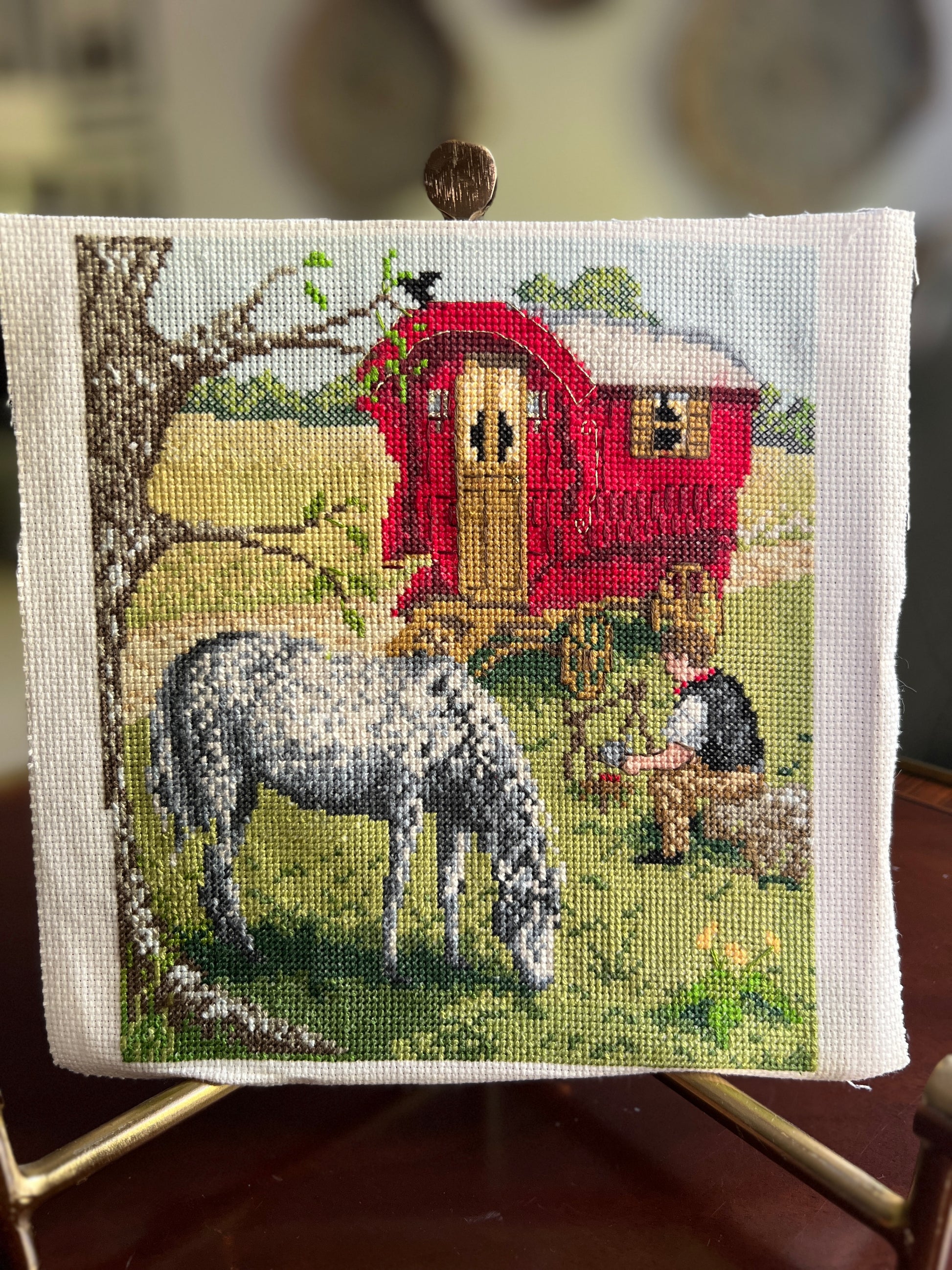 Antique Needlepoint found on our travels in England. In excellent condition and such a beautiful scene. This needs to be framed behind glass and I’d love to do that for you! Please reach out for framing options. This price is for unframed.