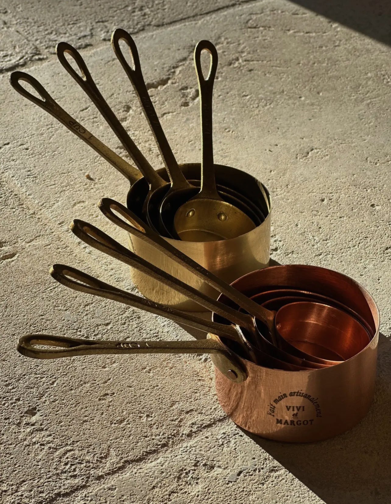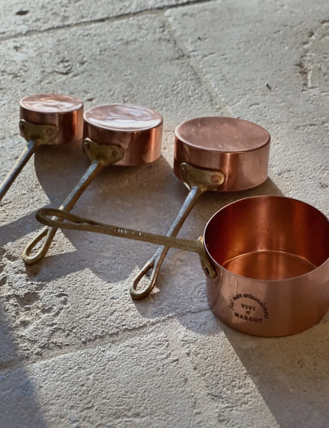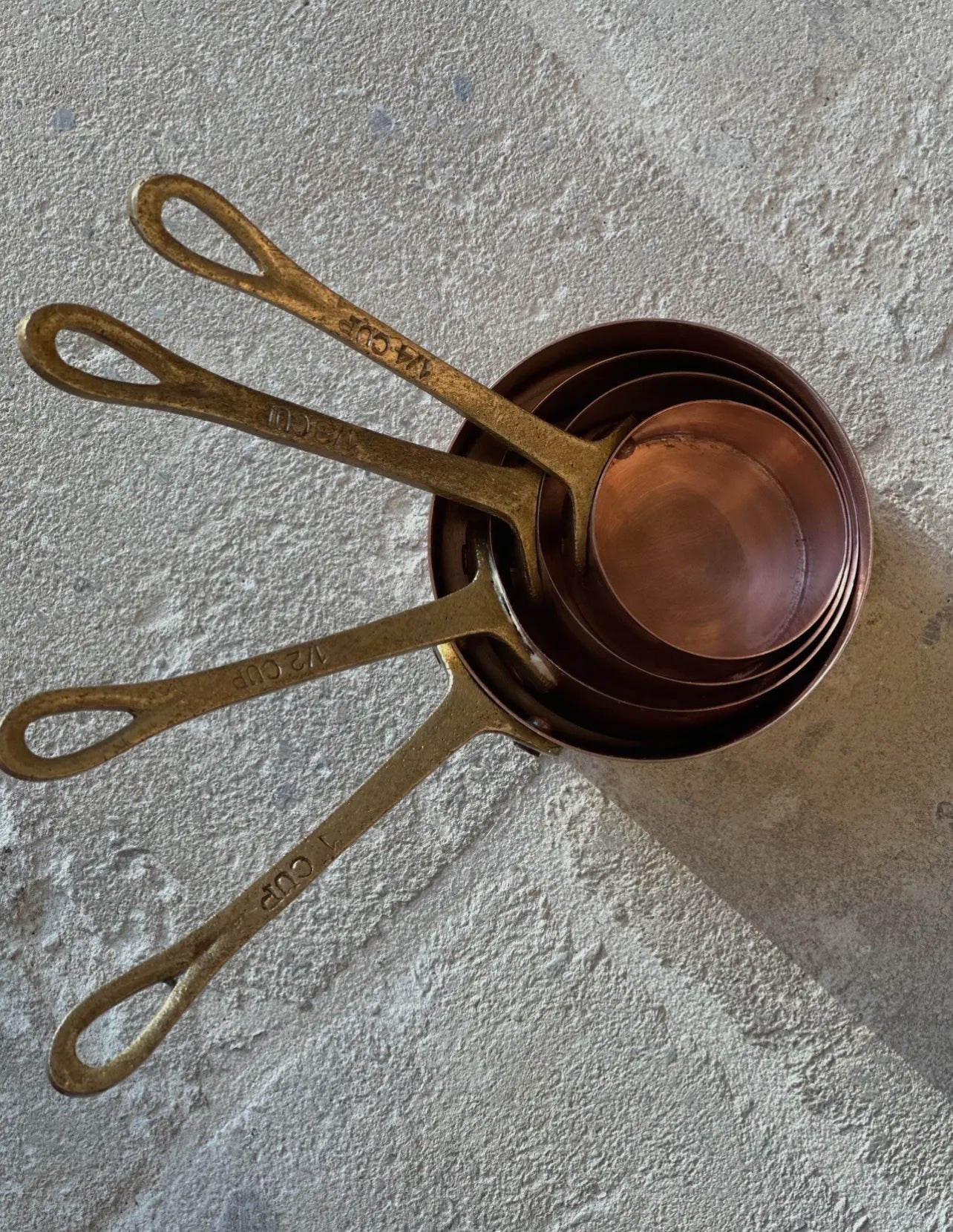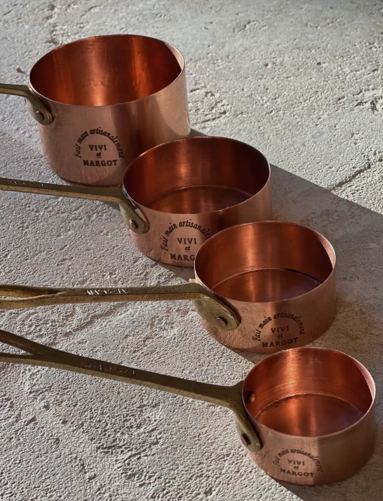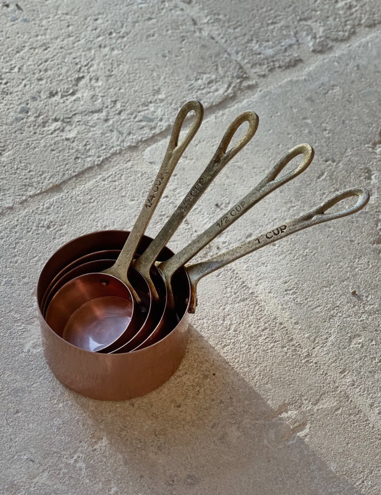 Our most popular item that we have ever designed is back and even better!! Our artisan made antiqued measuring cup set. Often copied, these are the original. The designs we made are based upon vintage French copper saucepans and it’s all in the smallest of details.