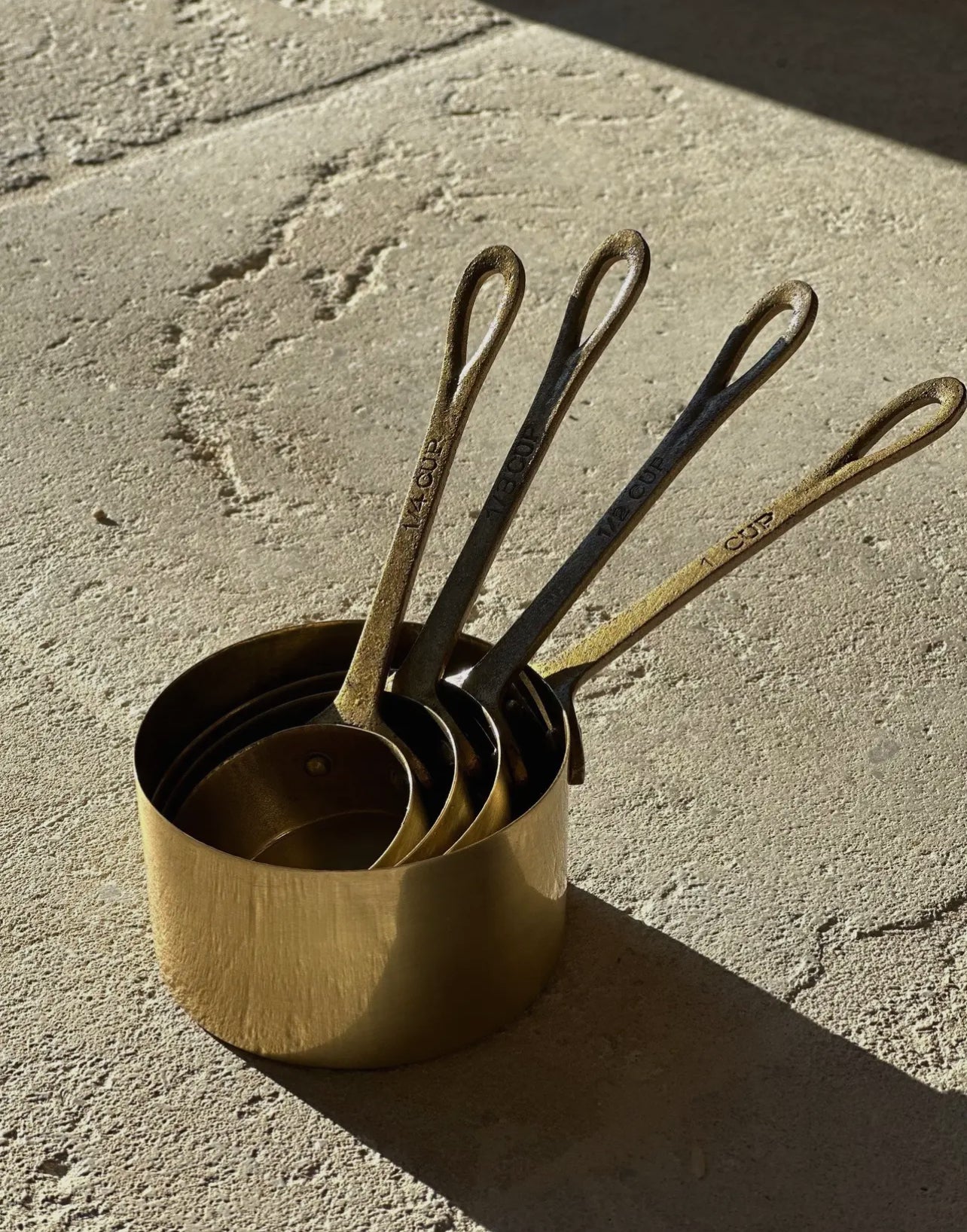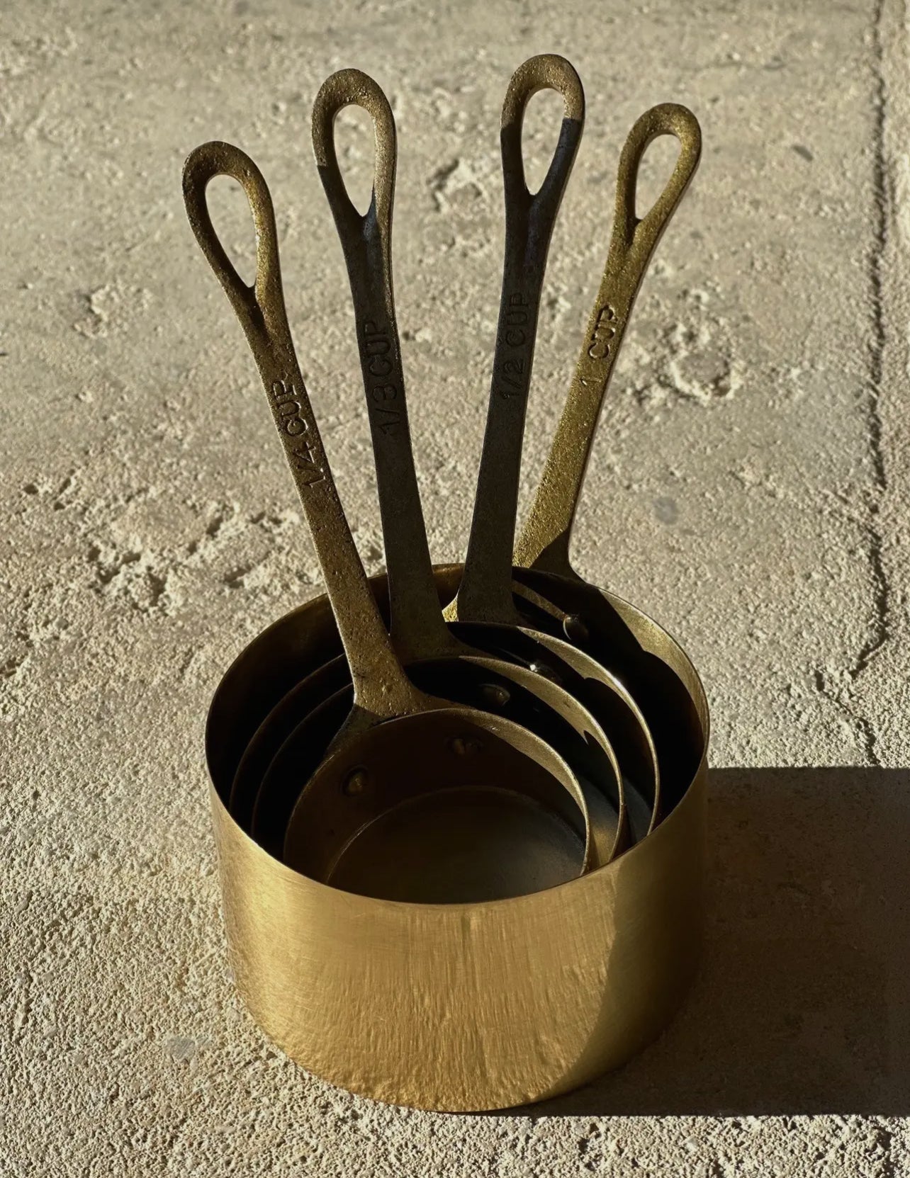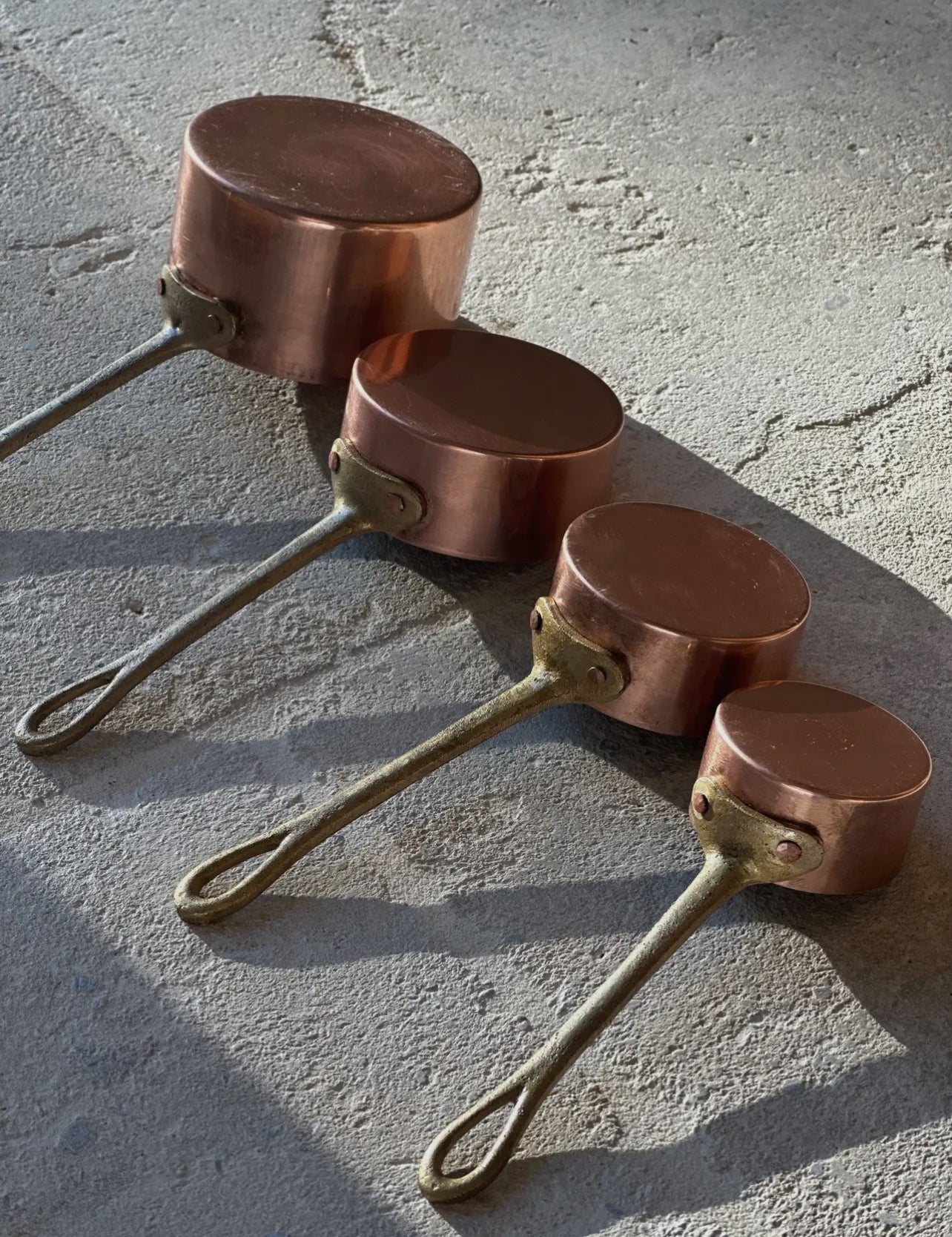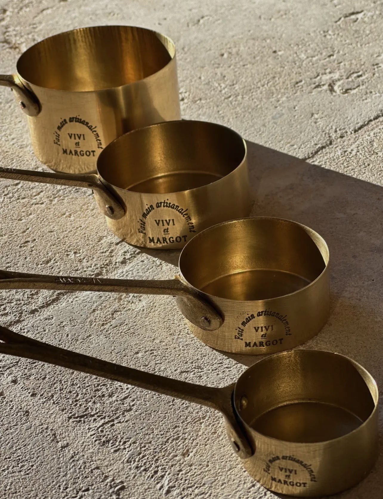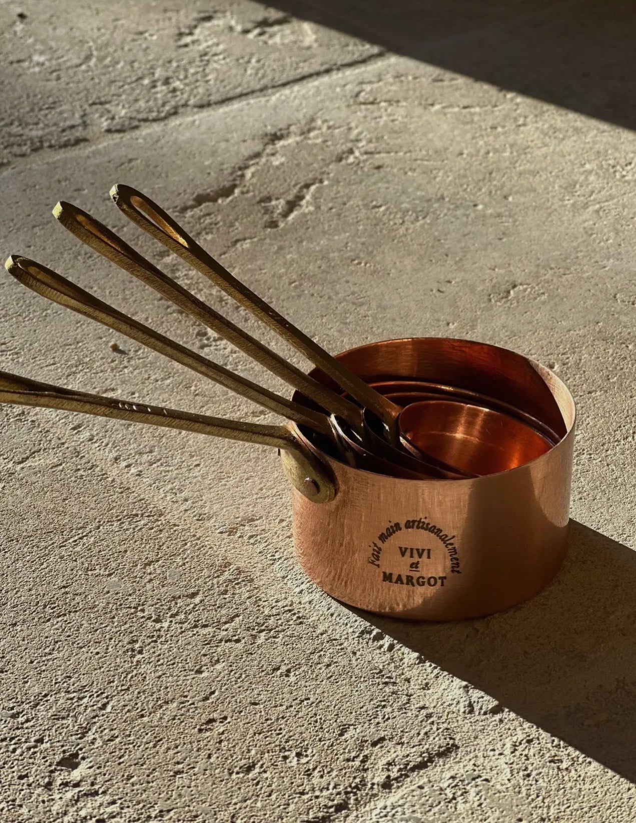 Our most popular item that we have ever designed is back and even better!! Our artisan made antiqued measuring cup set. Often copied, these are the original. The designs we made are based upon vintage French copper saucepans and it’s all in the smallest of details.