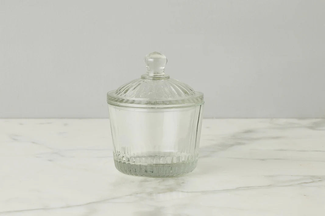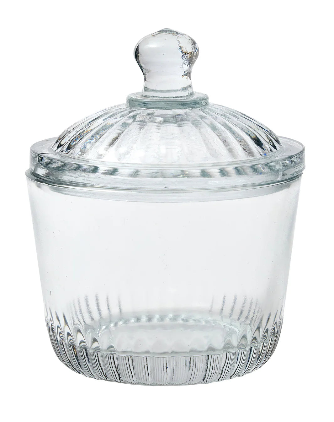 Inspired by the timeless elegance of 1930s Depression glass, the French Bistro Glass Bon Bon Jar blends vintage charm with modern functionality. This textured jar is crafted from durable glass and the lid features a rounded knob for effortless access. Perfect for storing cookies, chocolates or bathroom supplies like Qtips, this canister adds sophisticated style to any countertop or coffee table.