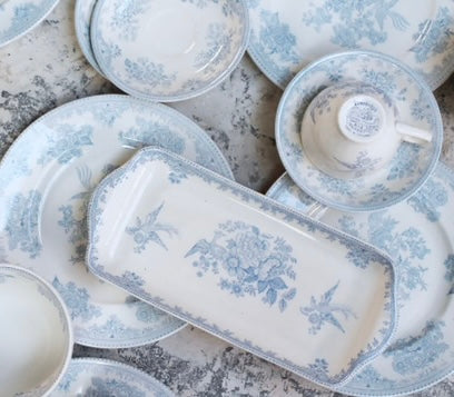 Absolutely gorgeous light blue and white transferware pottery, made in England by hand. The last company to make transferware the original and traditional way, with tissue paper, makes these heirloom pieces, with a pattern like art that is so beautiful to display!