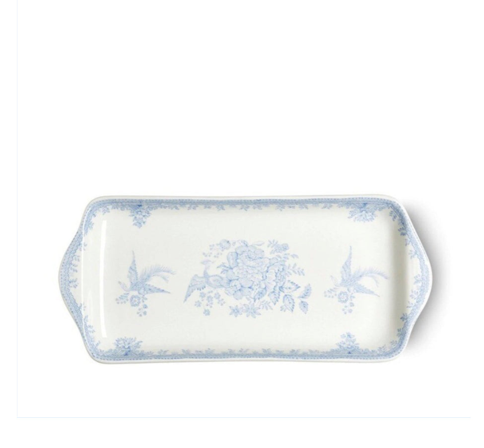 This darling sandwich tray and platter is a best seller, and now discontinued. Small at about 11” by 5” in size, it is perfect to display wee sandwiches for tea, a cheese platter, or hang on the wall in a plate collage to decorate a wall in your home! I love using mine with 2 mugs of hot cocoa and biscuits.
