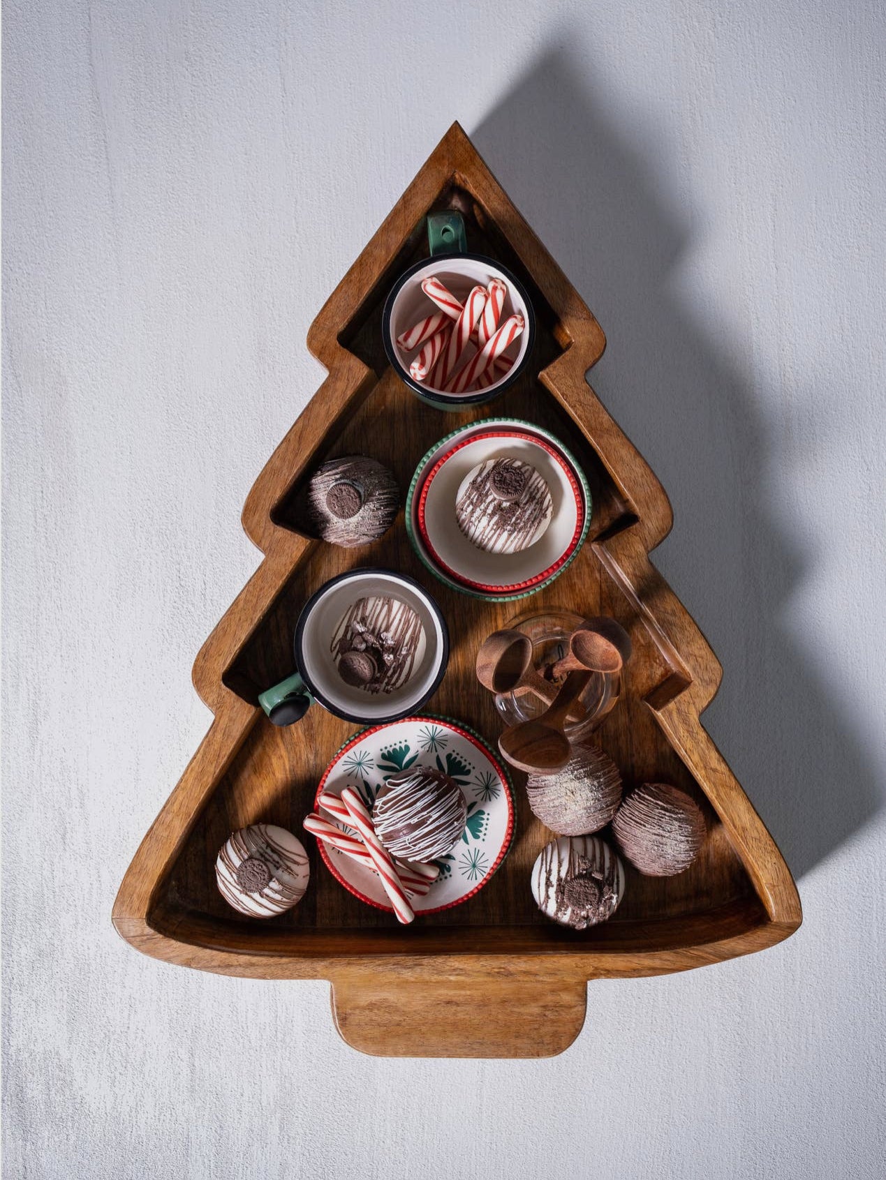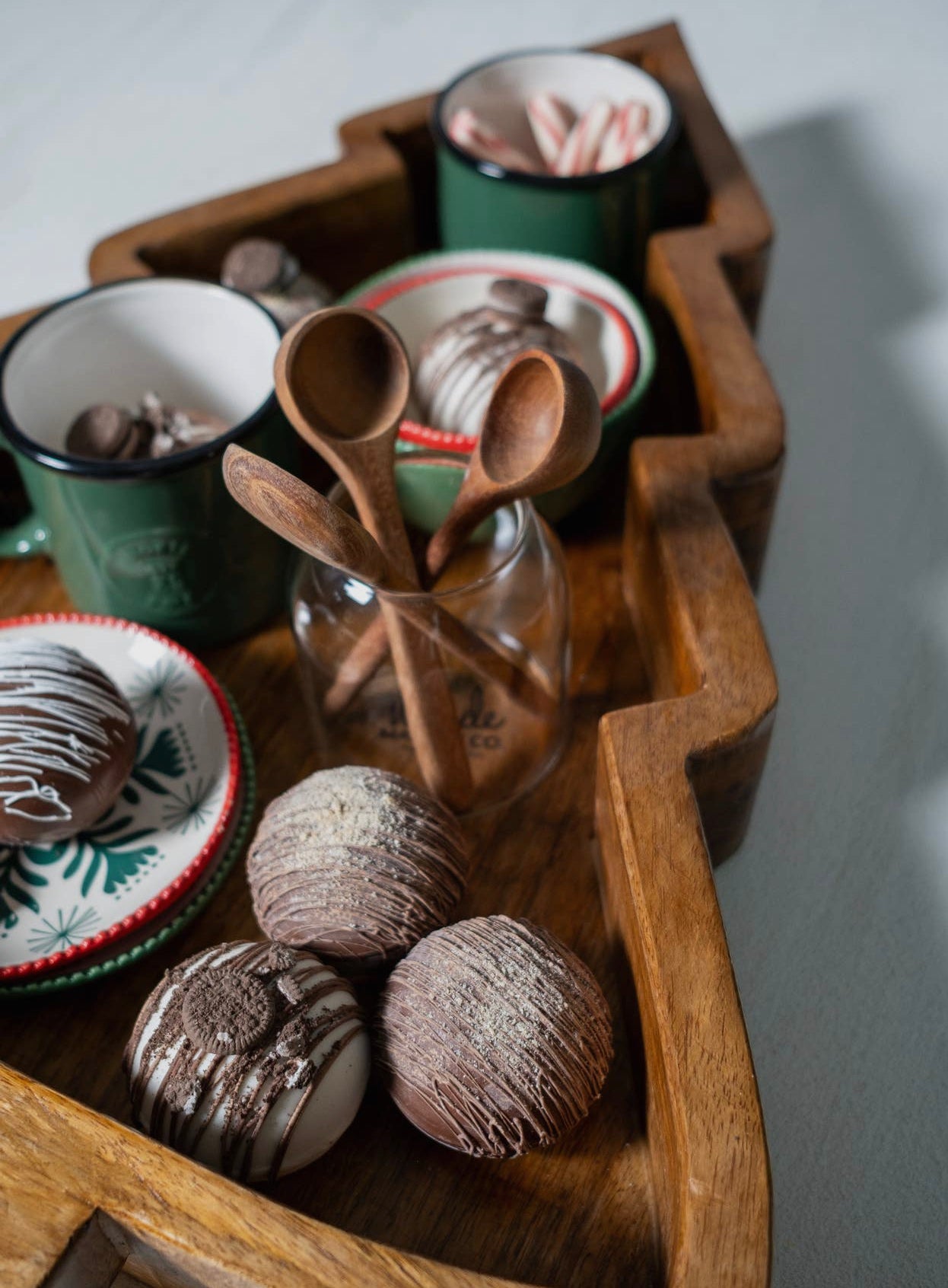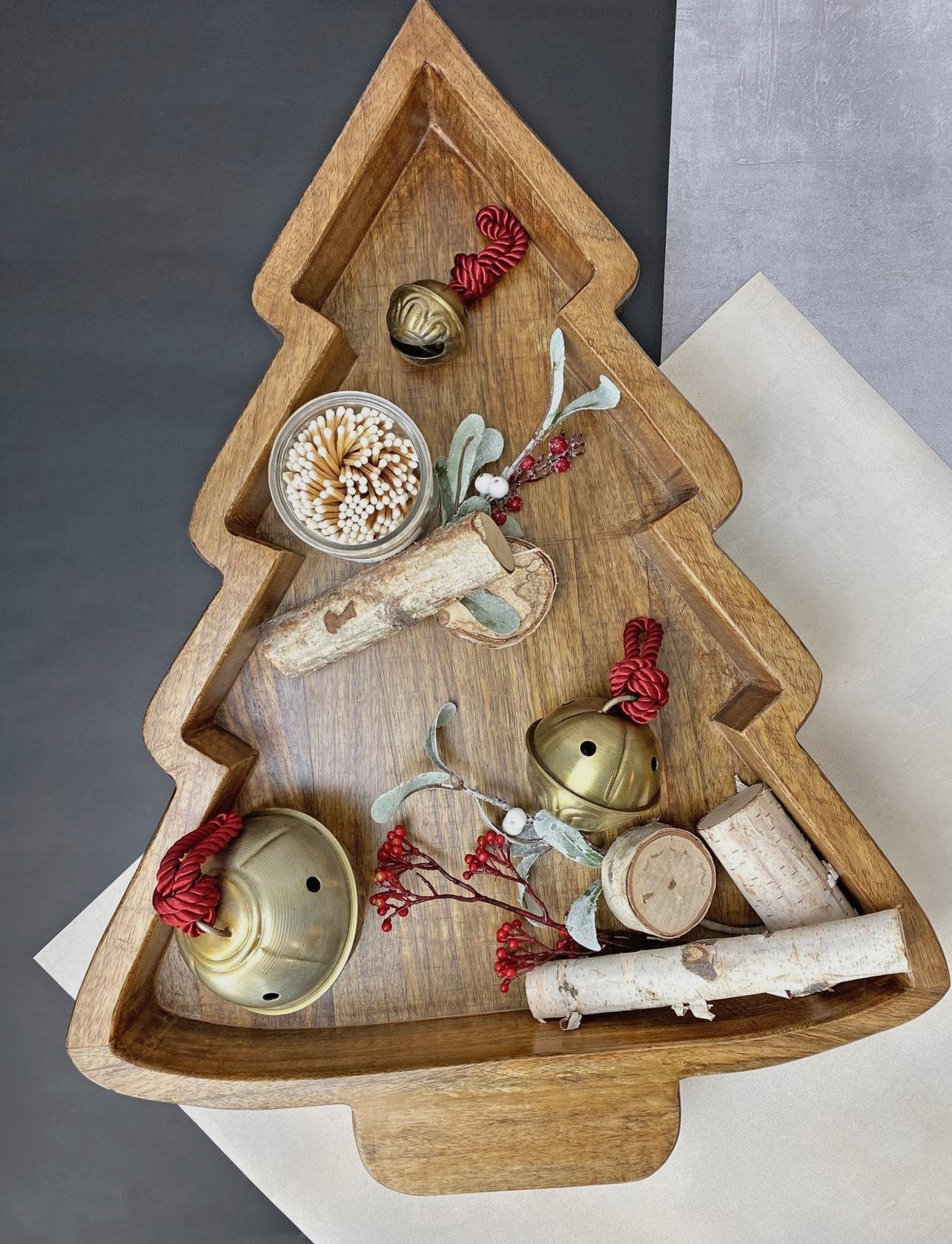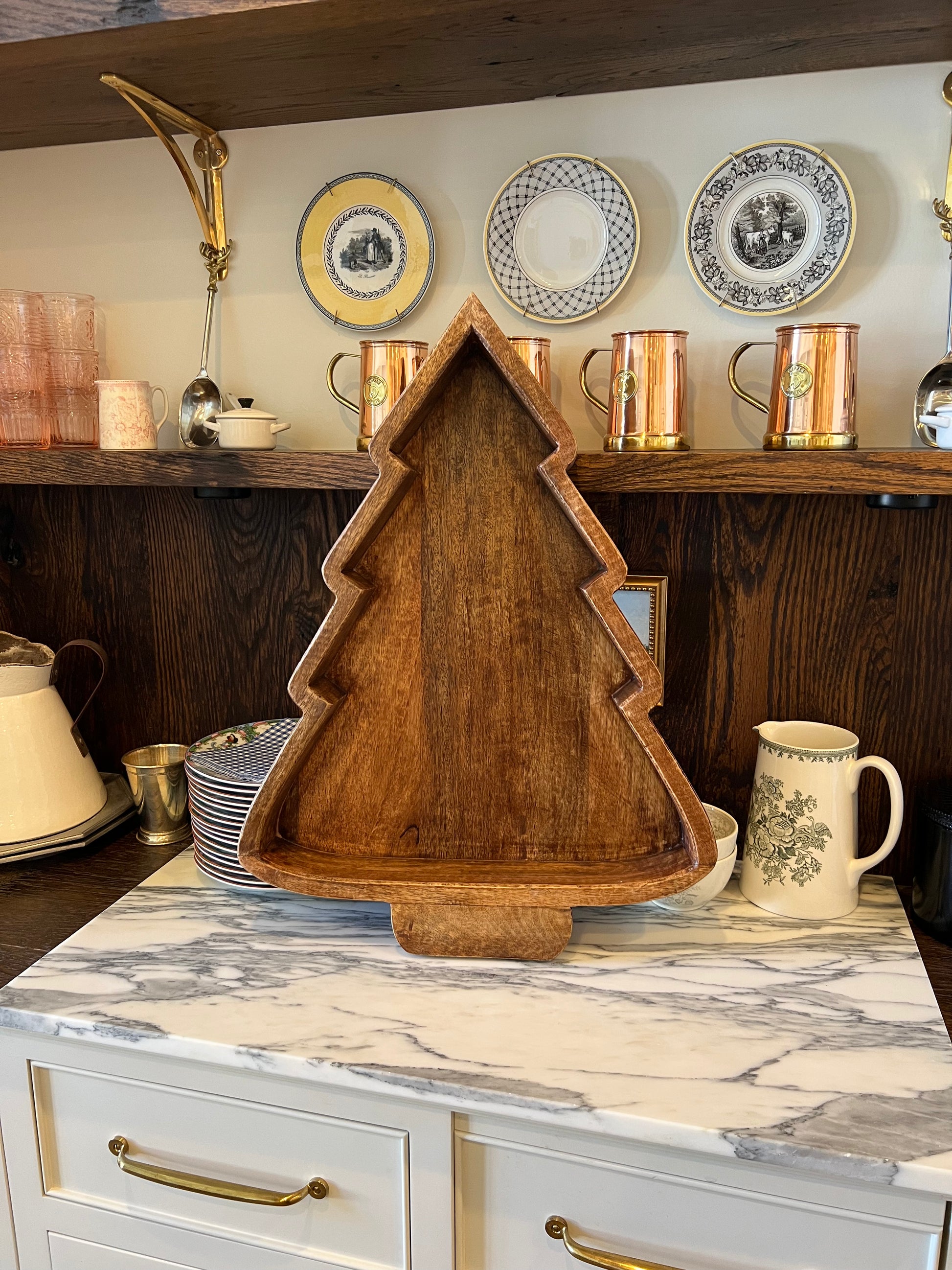 Bring holiday cheer to your tabletop with this wood charcuterie bowl. A statement in simplicity for your countertop or tablescape. This is HUGE and ready for so many ideas! Charcuterie, candles and greenery, hot chocolate bar, your favorite glass ornaments, etc.