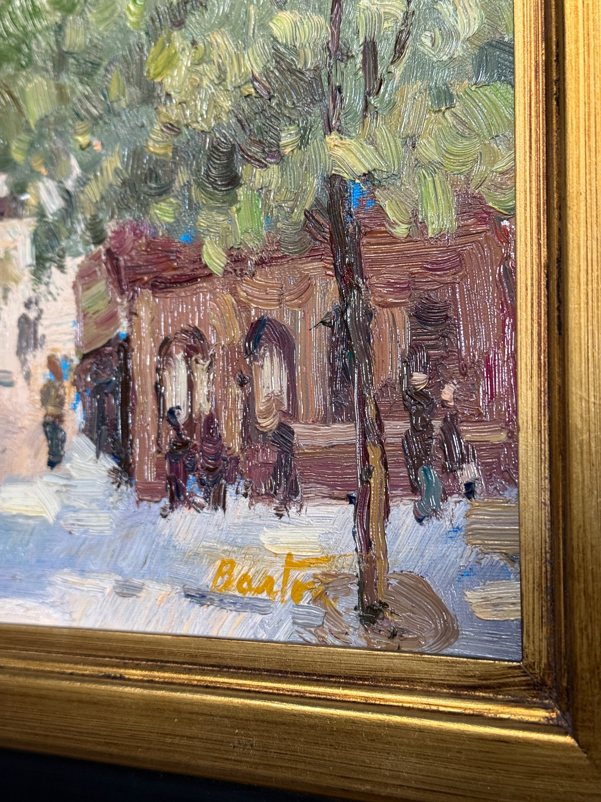 Cityscape Oil Painting in Black & Gold Frame