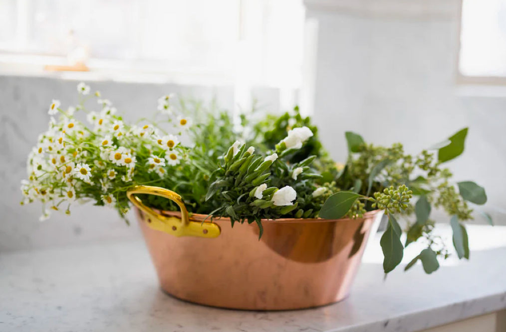 Our Large Copper English Tub or the "do everything tub". Whether it's storing drinks for your next party, cooking your next large meal, or simply displaying on your shelf, our handmade English Tub is truly a new piece meant to last a lifetime. Made entirely out of copper, featuring two brass handles.