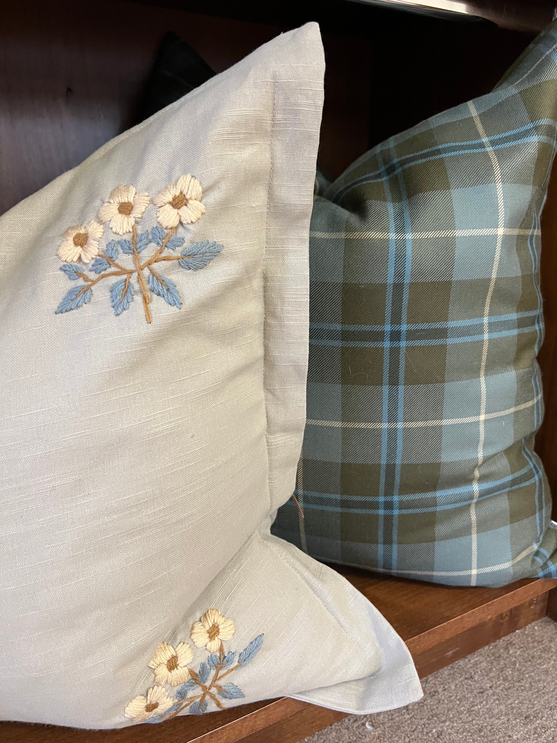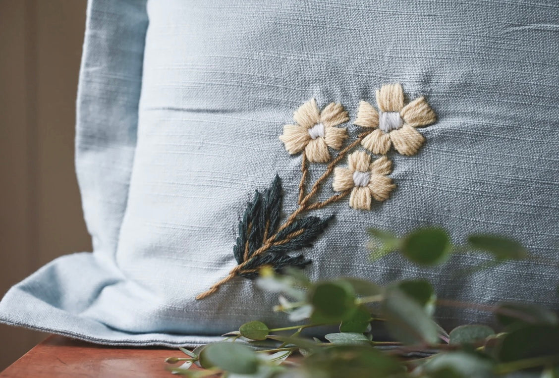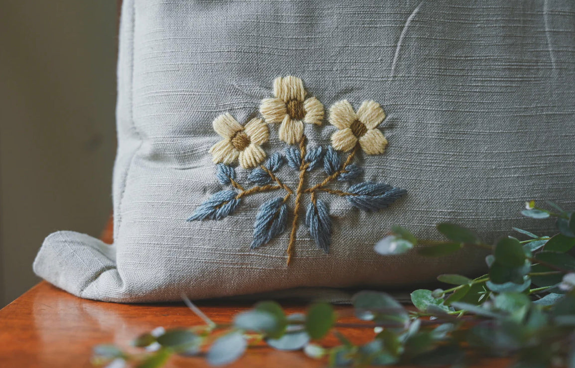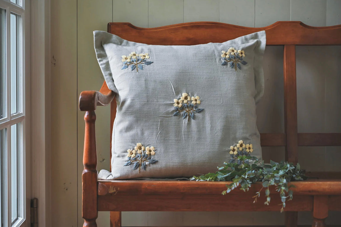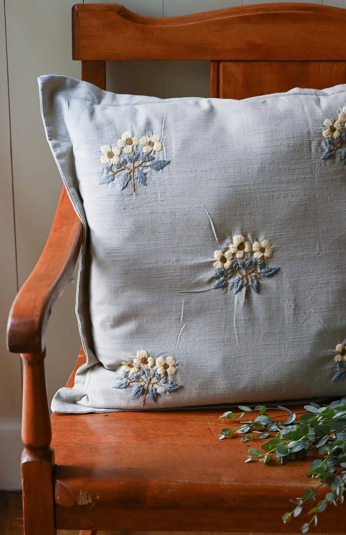 These beautiful, classic pillow covers features four or five charming embroidered flowers. The pillows feature wool thread embroidery and each flower has been hand sewn to make them truly one-of-a-kind.