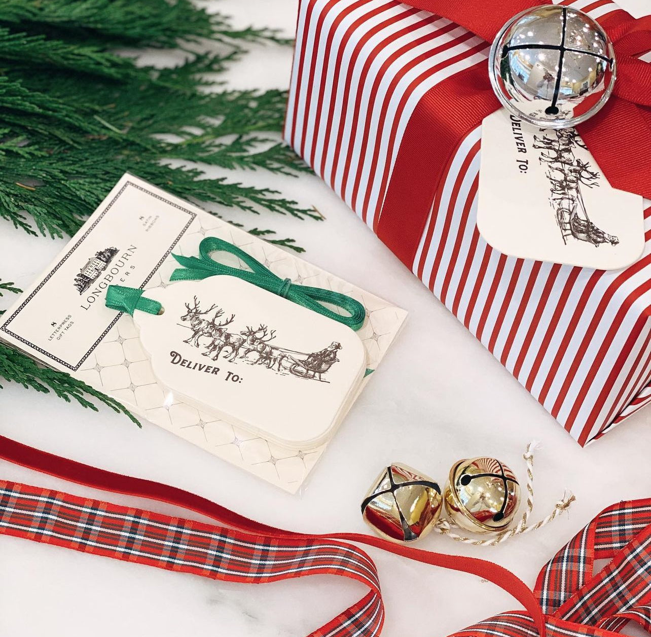 Holiday Gift Tags. 8 letterpress gift tags with 8 satin ribbons. Each tag is pressed on 220-lb, 100% cotton paper. 2.5” x 4”.