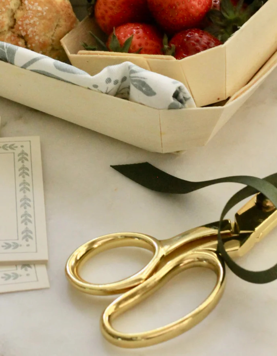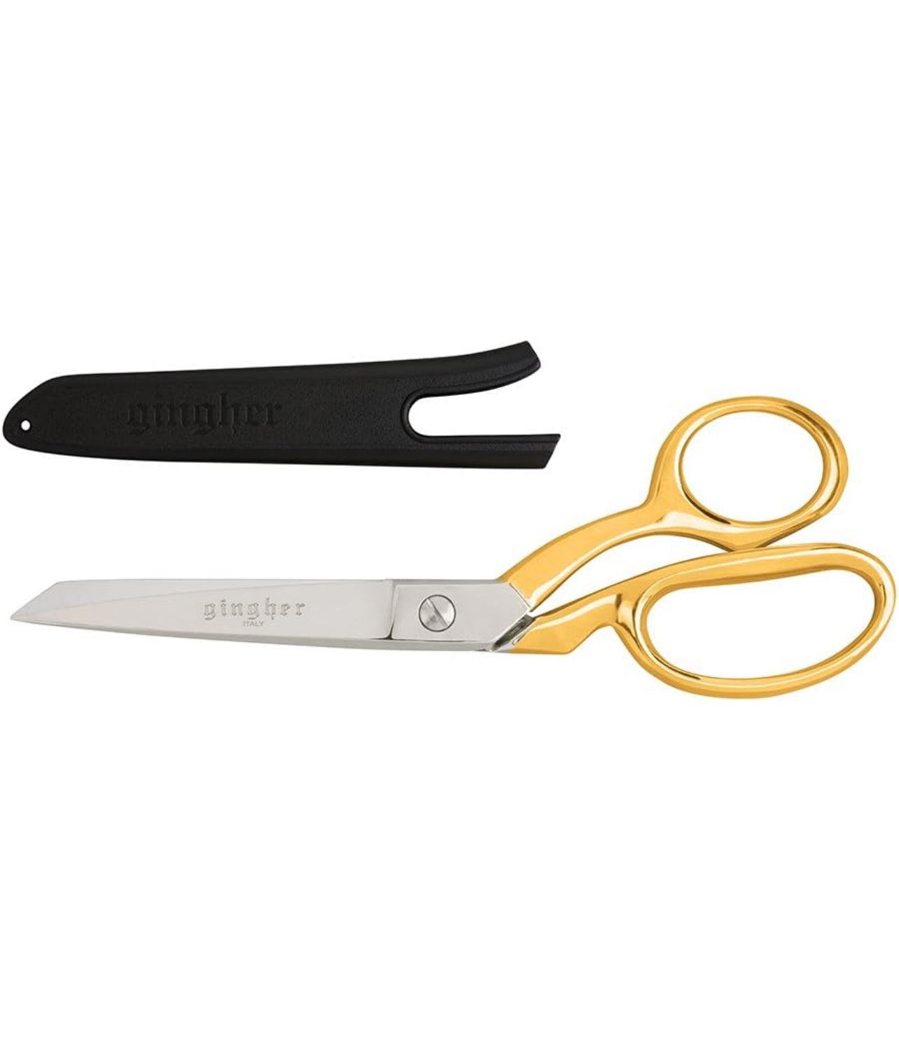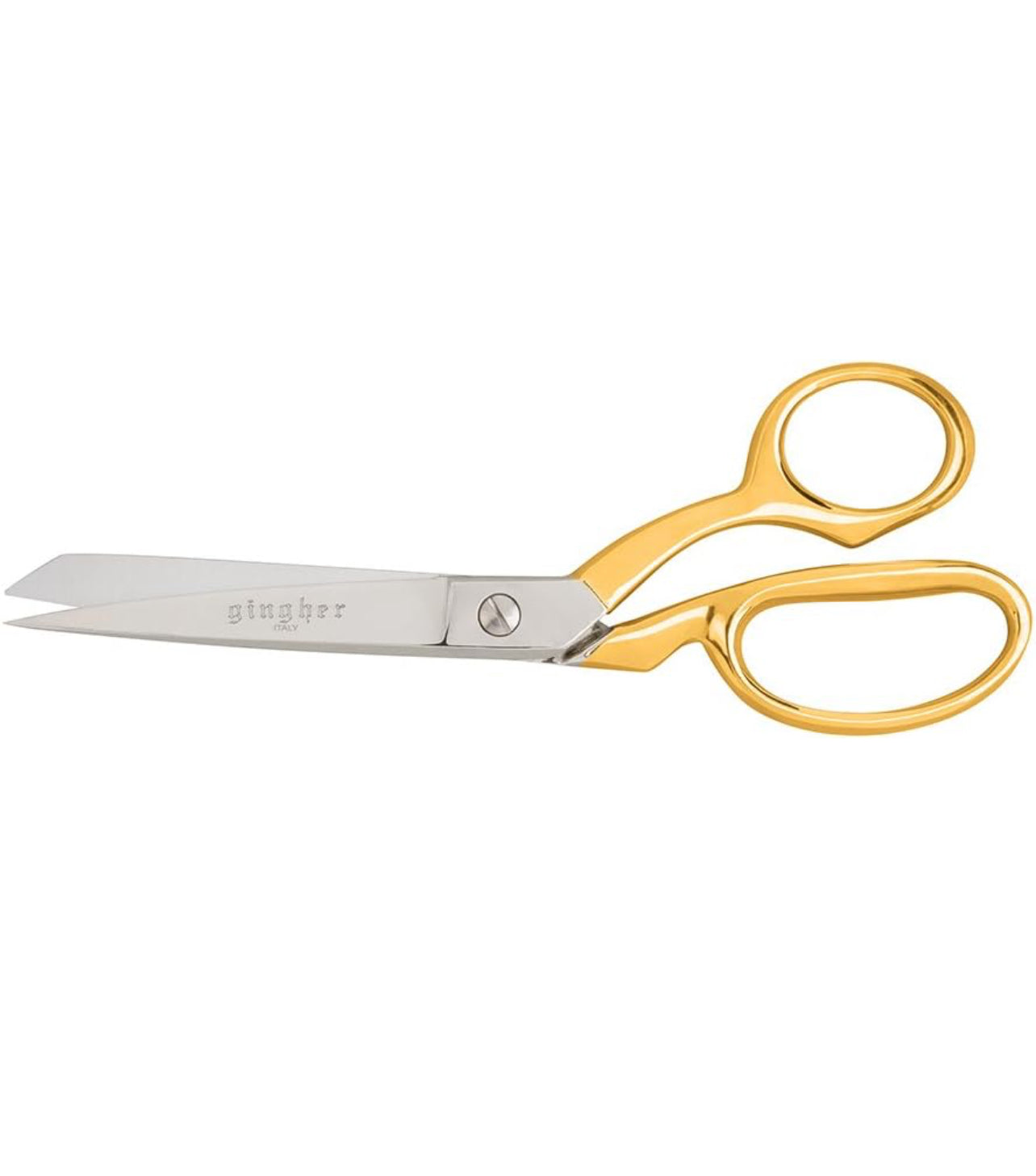My favorite scissors for ribbon cutting! These 8” Gingher Dressmaker Shears offer a longer cut ideal for cutting patterns, trimming seams or cutting long swaths of fabric, and a gold-plated handle adds an unmistakable touch of sophistication. These versatile shears feature long, precision-ground, knife-edge blades that cut multiple layers of fabric easily, all the way to the tip. A double-plated chrome-over-nickel blade finish is both striking and durable, and the bent-handle design helps hold fabric flat on a tabletop or counter for smooth, comfortable, mistake-free cutting. Dressmaker Shears also include a nylon sheath to protect the blades when not in use.