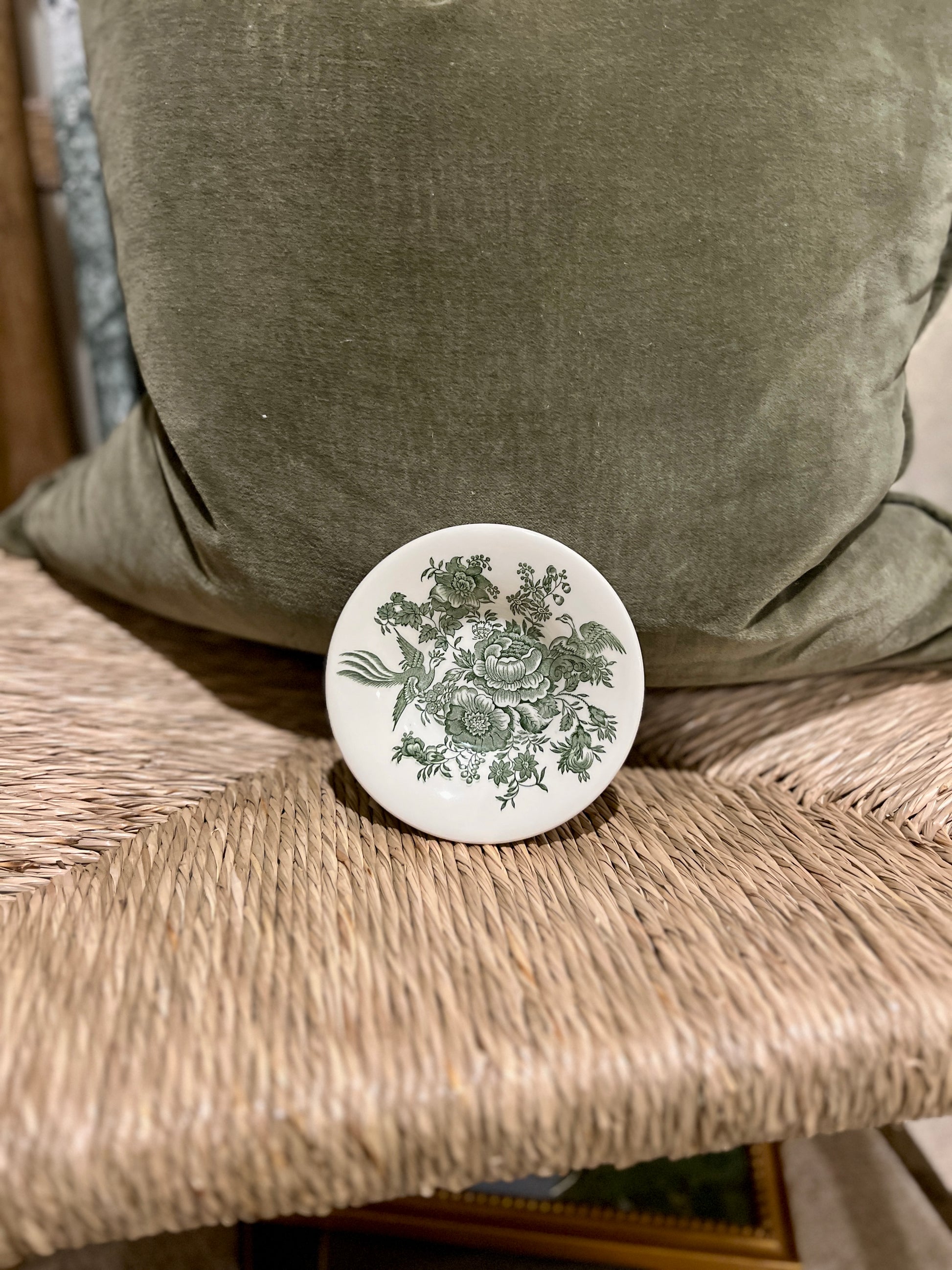 Absolutely gorgeous green and white transferware pottery, made in England by hand. The last company to make transferware the original and traditional way, with tissue paper, makes these heirloom pieces, with a pattern like art that is so beautiful to display!