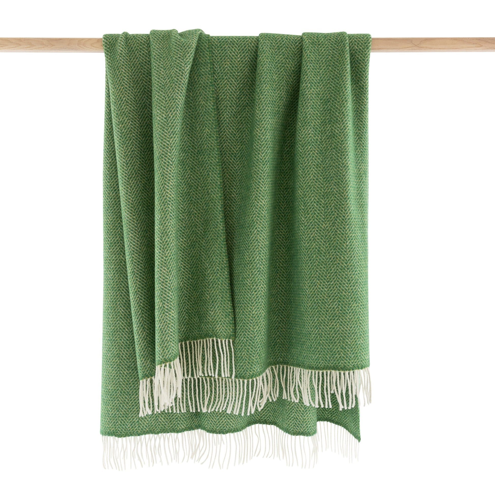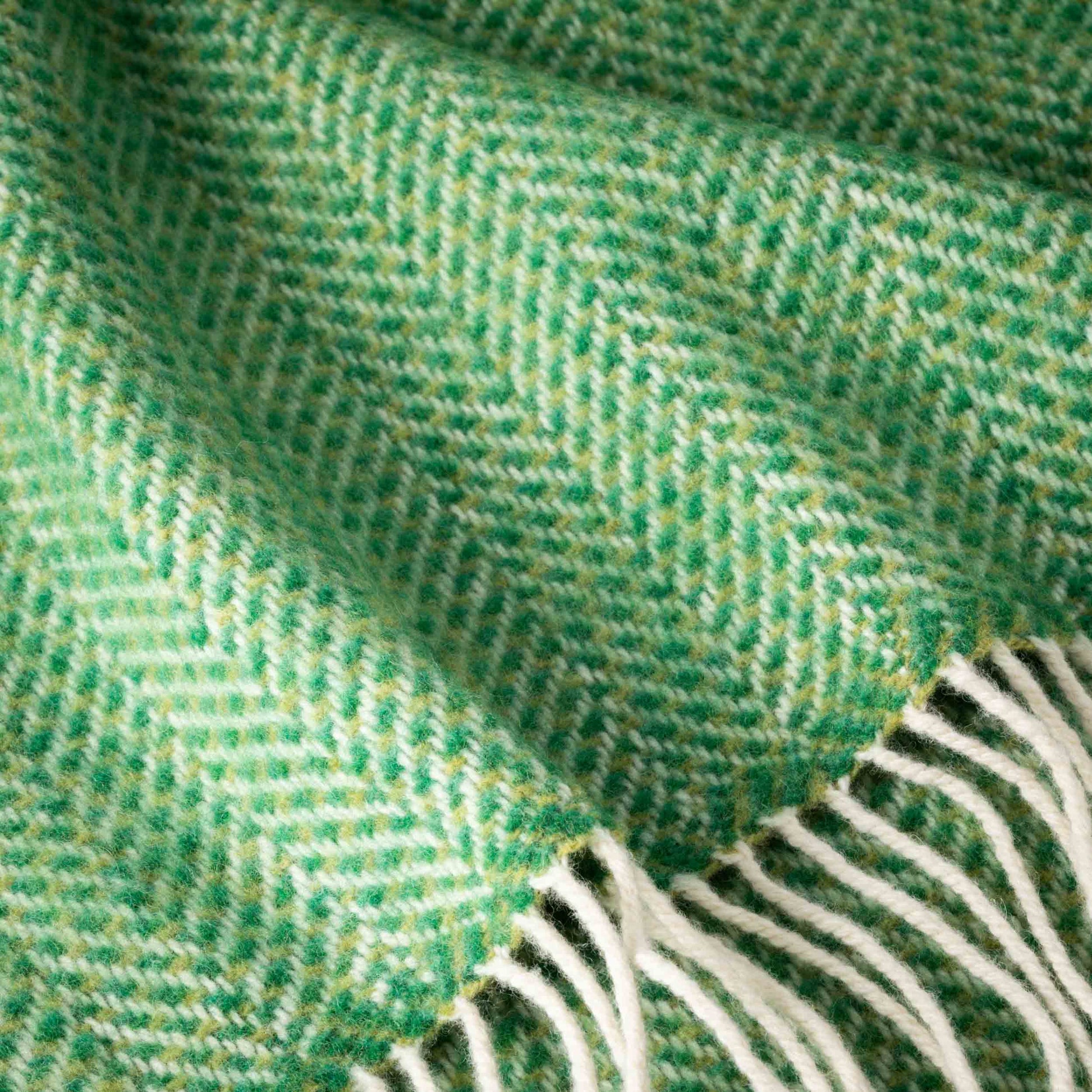 Cashmere Merino Throw in a Bright Green & Cream Herringbone. Made with a rich, thick blend of Cashmere and Merino wool. Truly the softest and most luxurious throw with a vibrant colour palette across the collection. 95% Merino Wool 5% Cashmere.