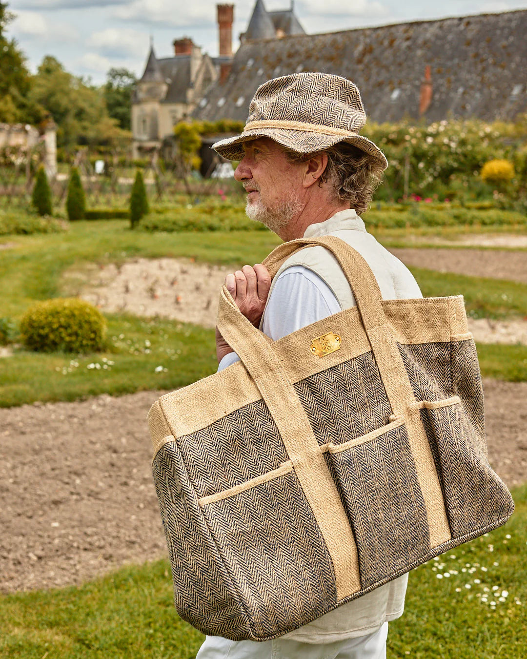 This jute travel bag, with its large dimensions and multiple deep pockets, is very practical for long getaways! It can easily hold newspapers, paperbacks, a travel kit and a beach towel.