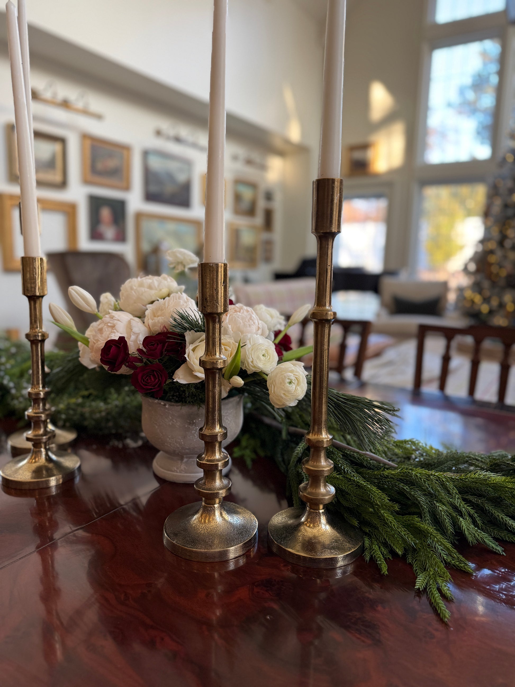 My new brass finish manor candlesticks are here! Classic and timeless candlesticks in a beautiful antiqued brass color. I love displaying these on my table all year round. They are a gorgeous design and are repeatedly asked about when guests come over!