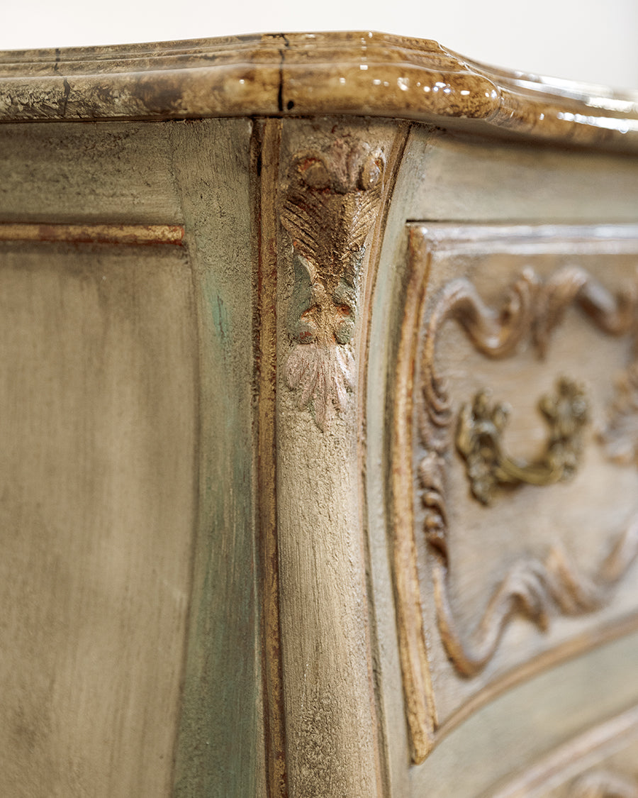 Marble Carved Demilune Bombe Bowed Green Chest
