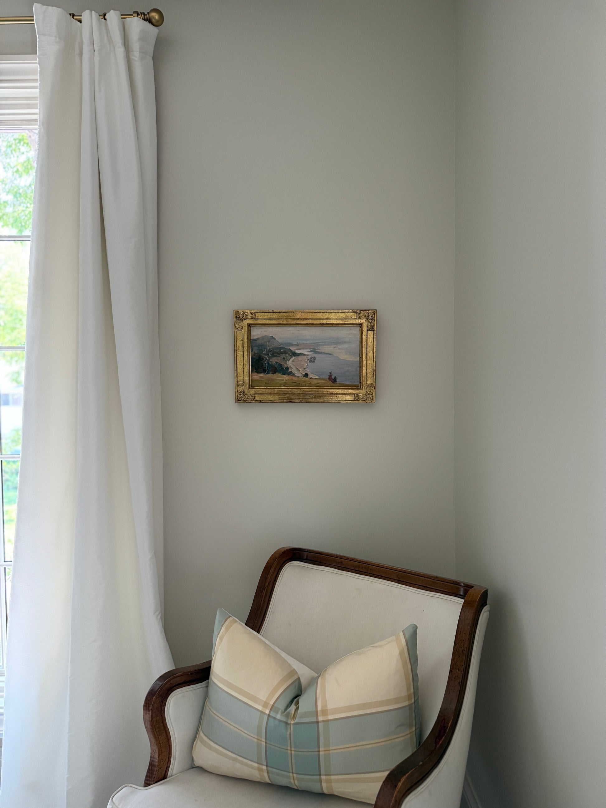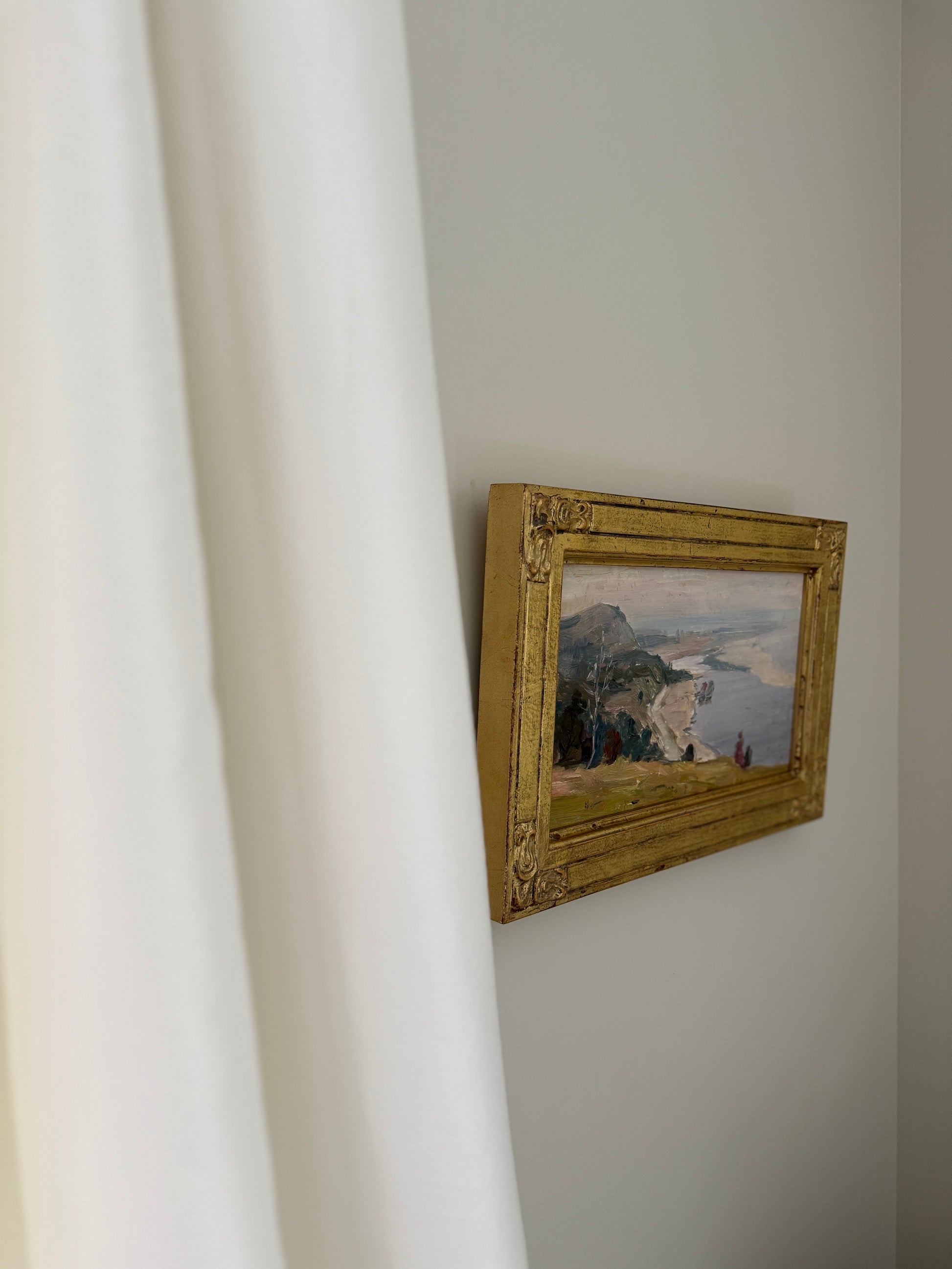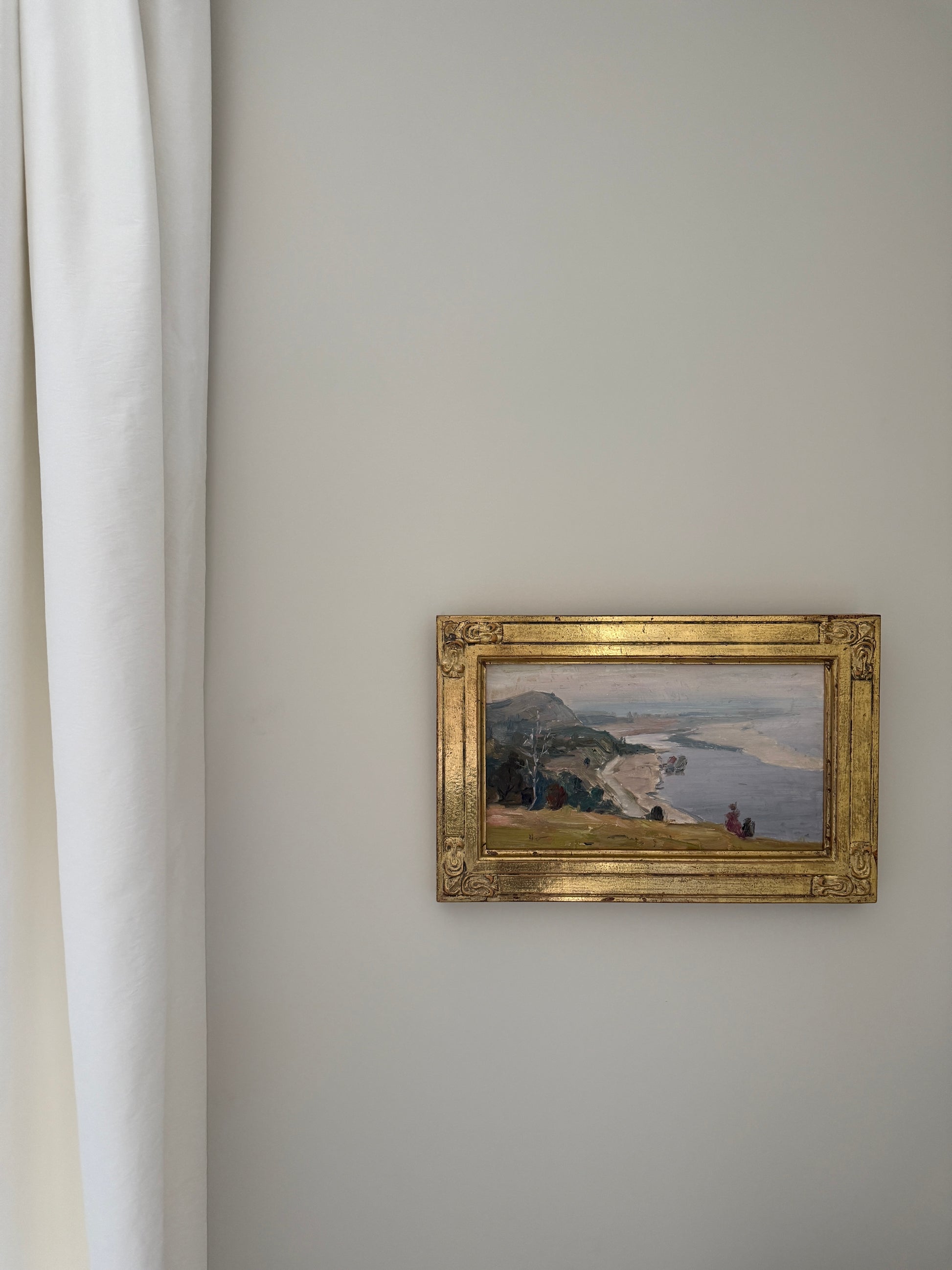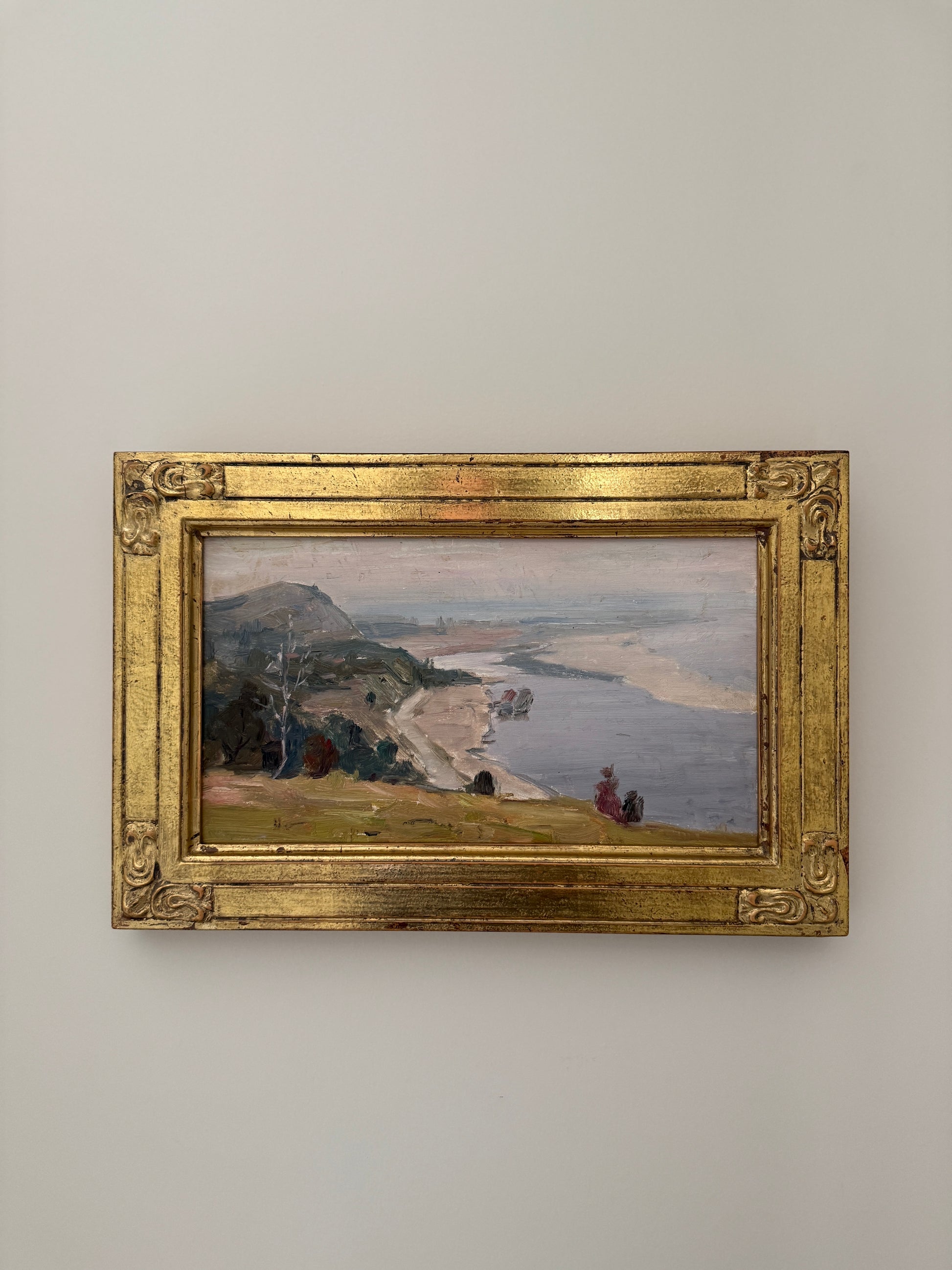 Oil painting in muted colors in custom 22k wood frame. Found in England. Russian artist