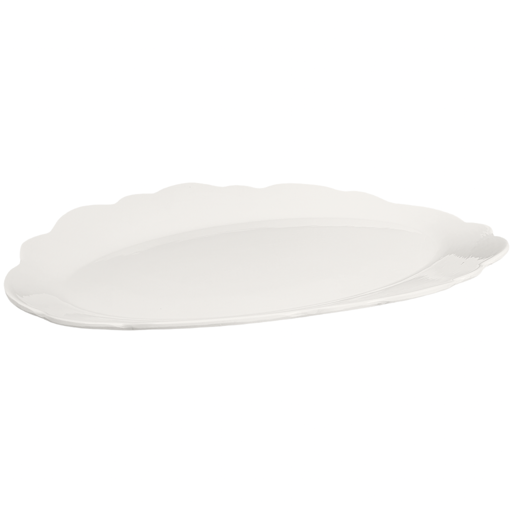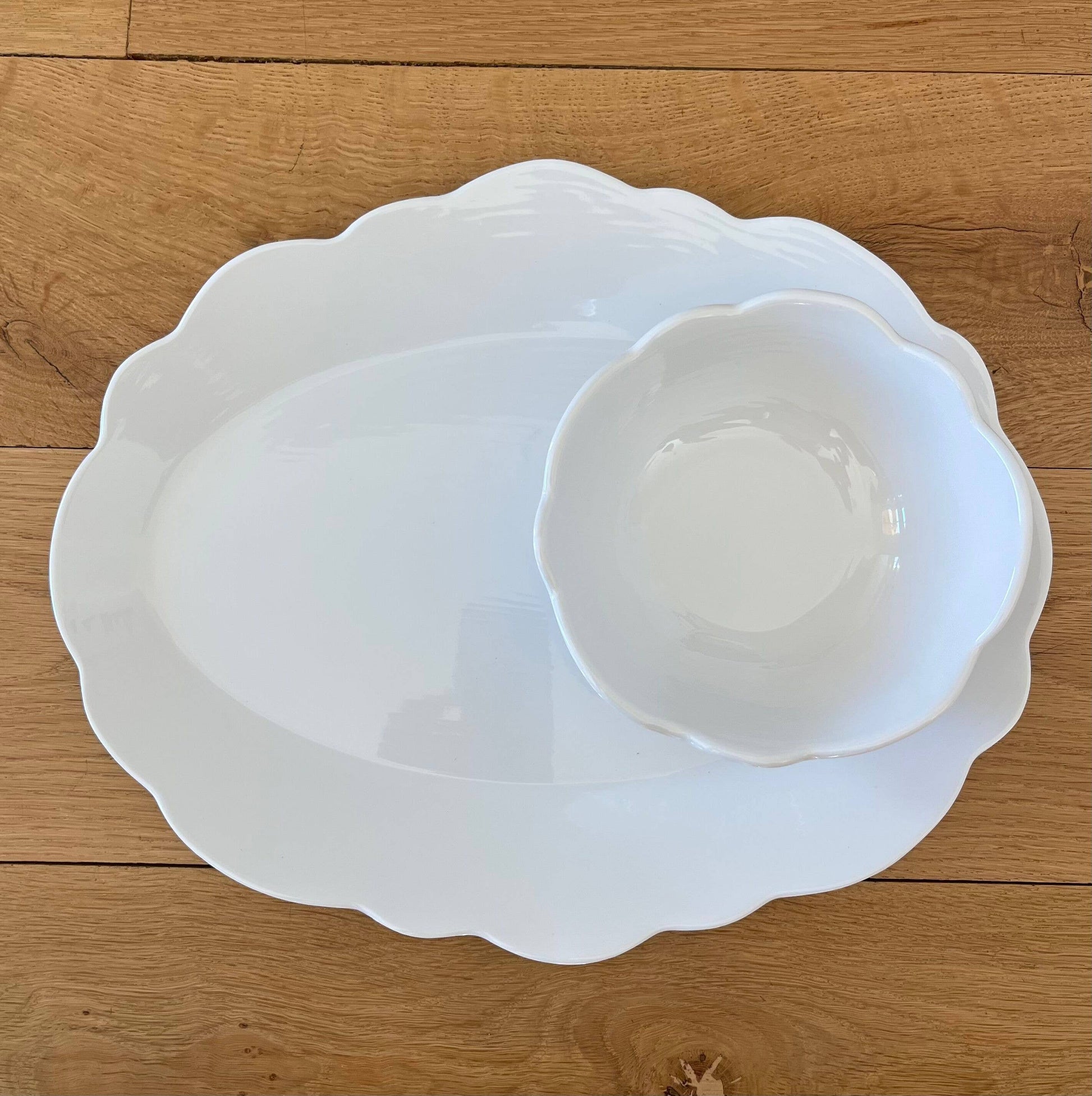Our scalloped oval tray makes a side dish look extra special on the table. 14" X 10.5" serving oval with scalloped edge. 100% melamine, BPA free, dishwasher safe!