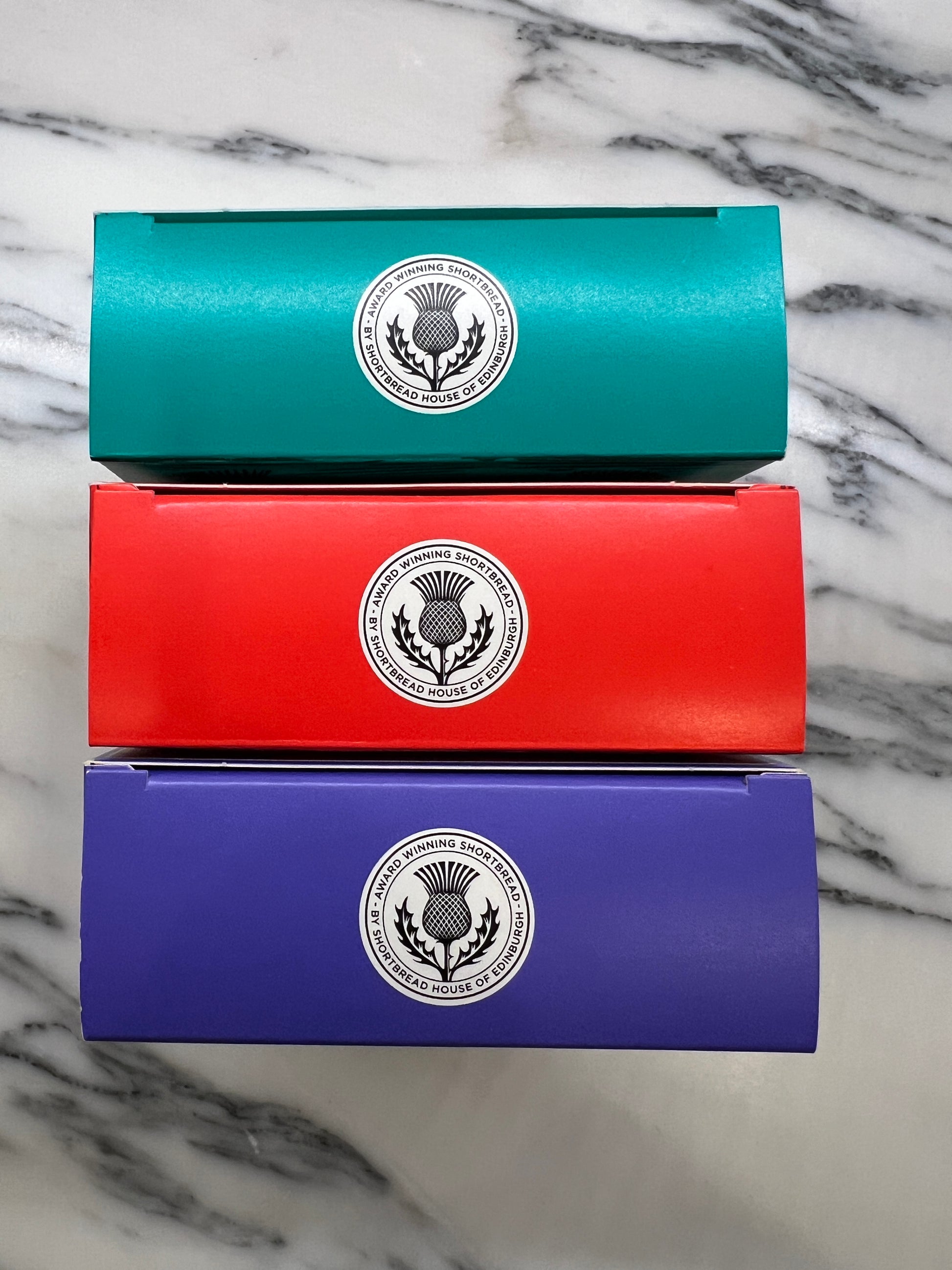 Each box contains a sealed bag of eight shortbread fingers. Choose from 3 different, absolutely melt in your mouth flavors: original, ginger & orange chocolate.