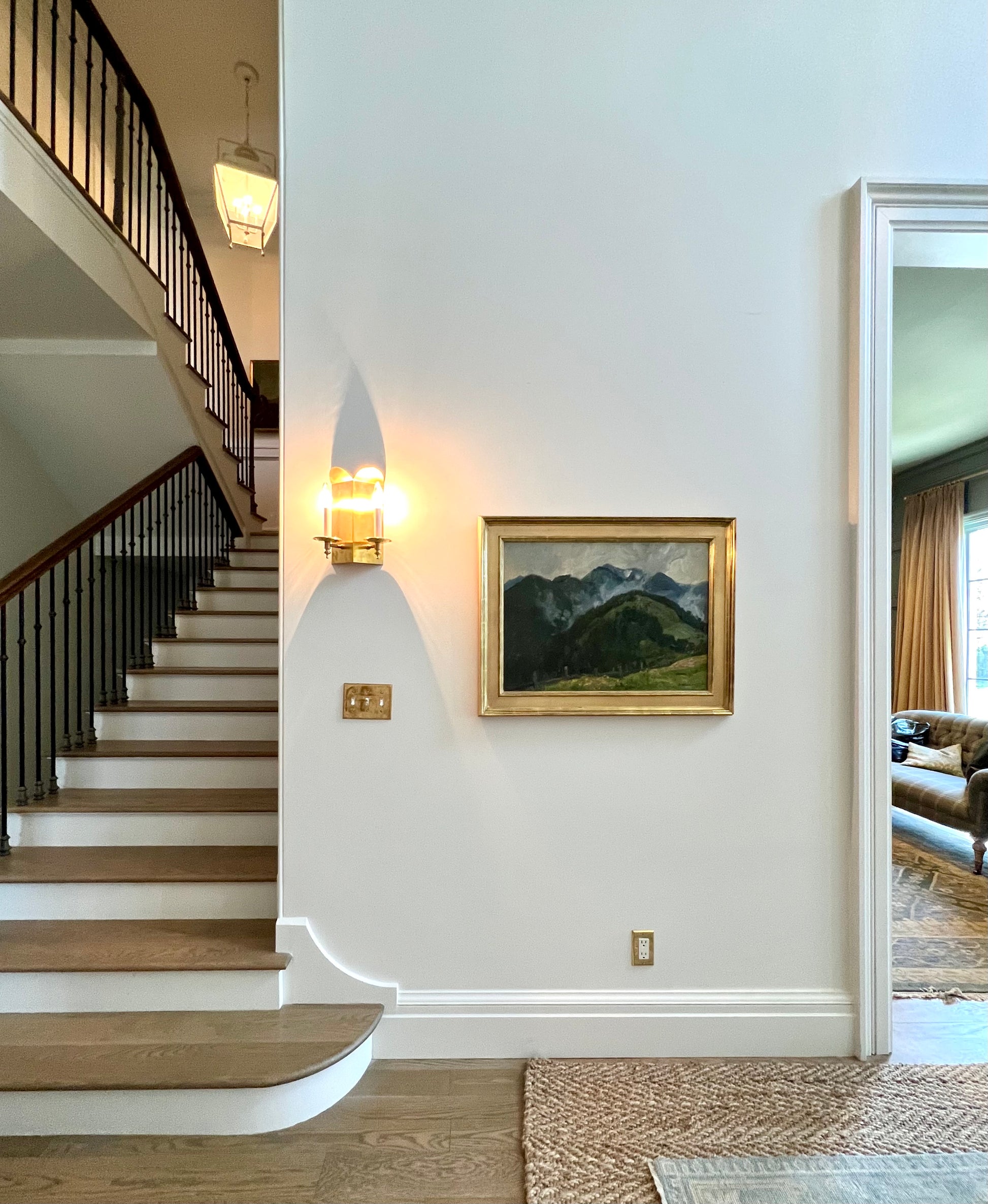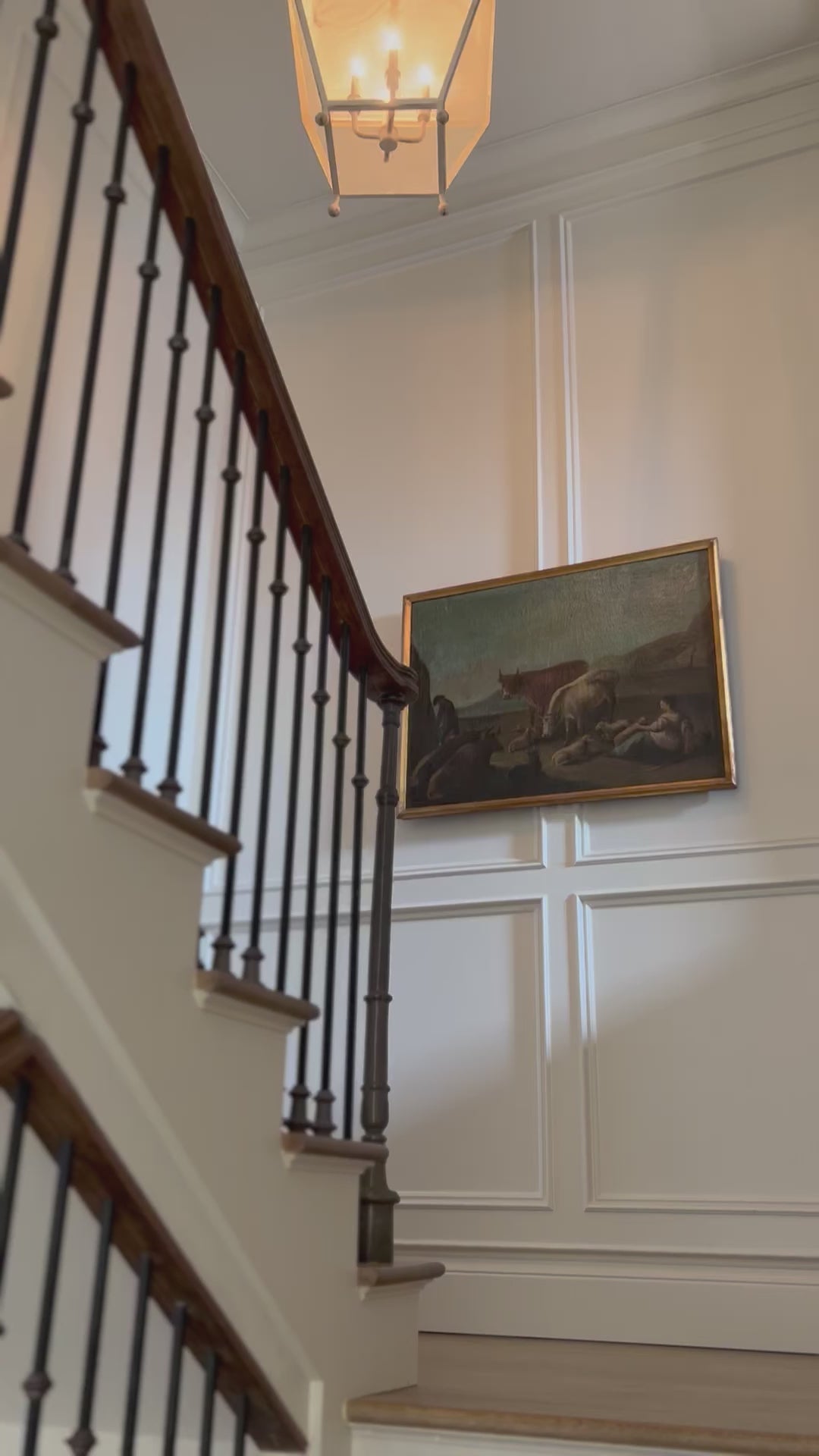 Our beautiful antiqued staircase lantern is my favorite! It’s a classic, traditional, large, statement with dimmable lights. Other color options in photos.