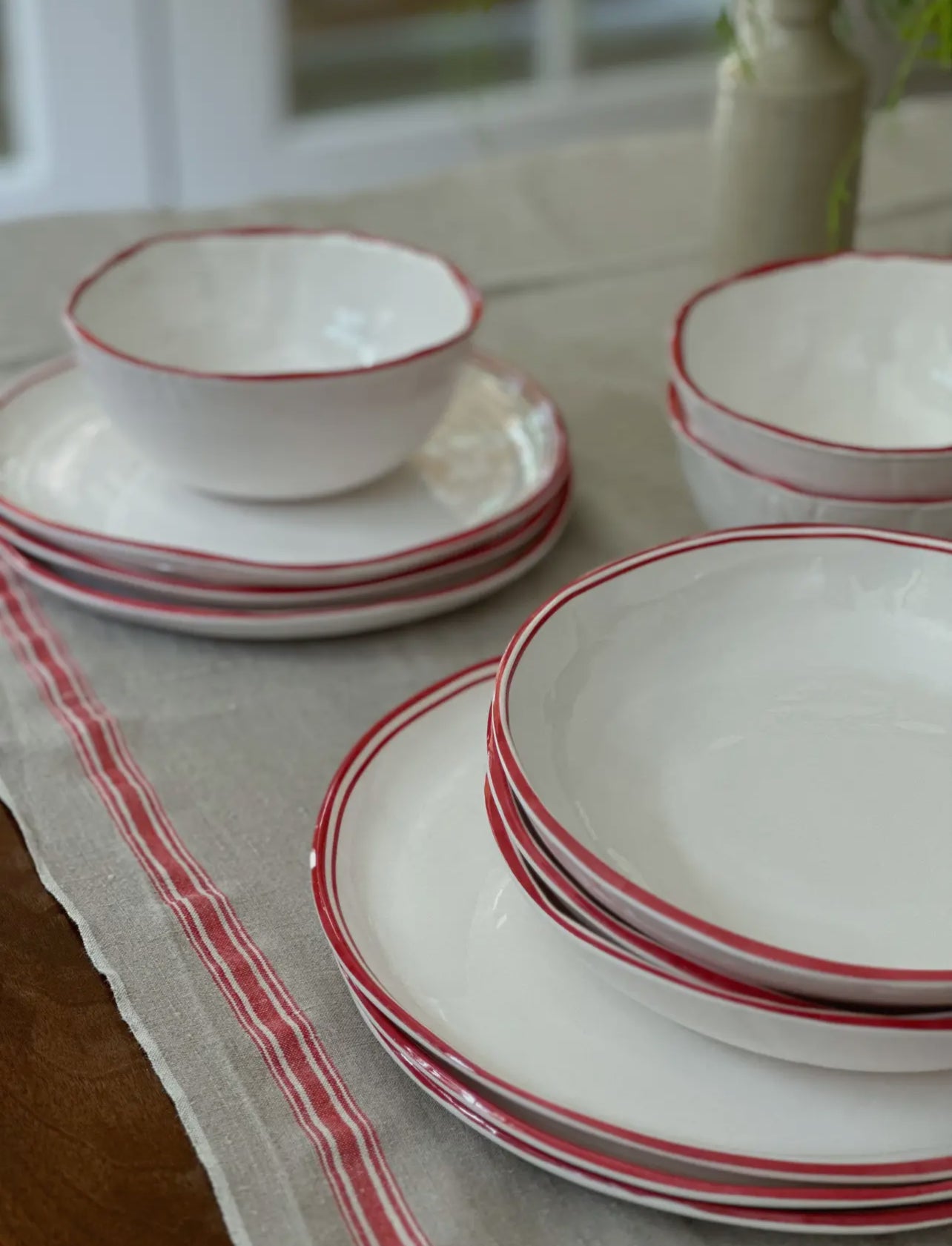 Our simply perfect 11" simple round dinner with the perfect red edge. Not just for Christmastime, this beautiful red edge is great for gathering year round.....