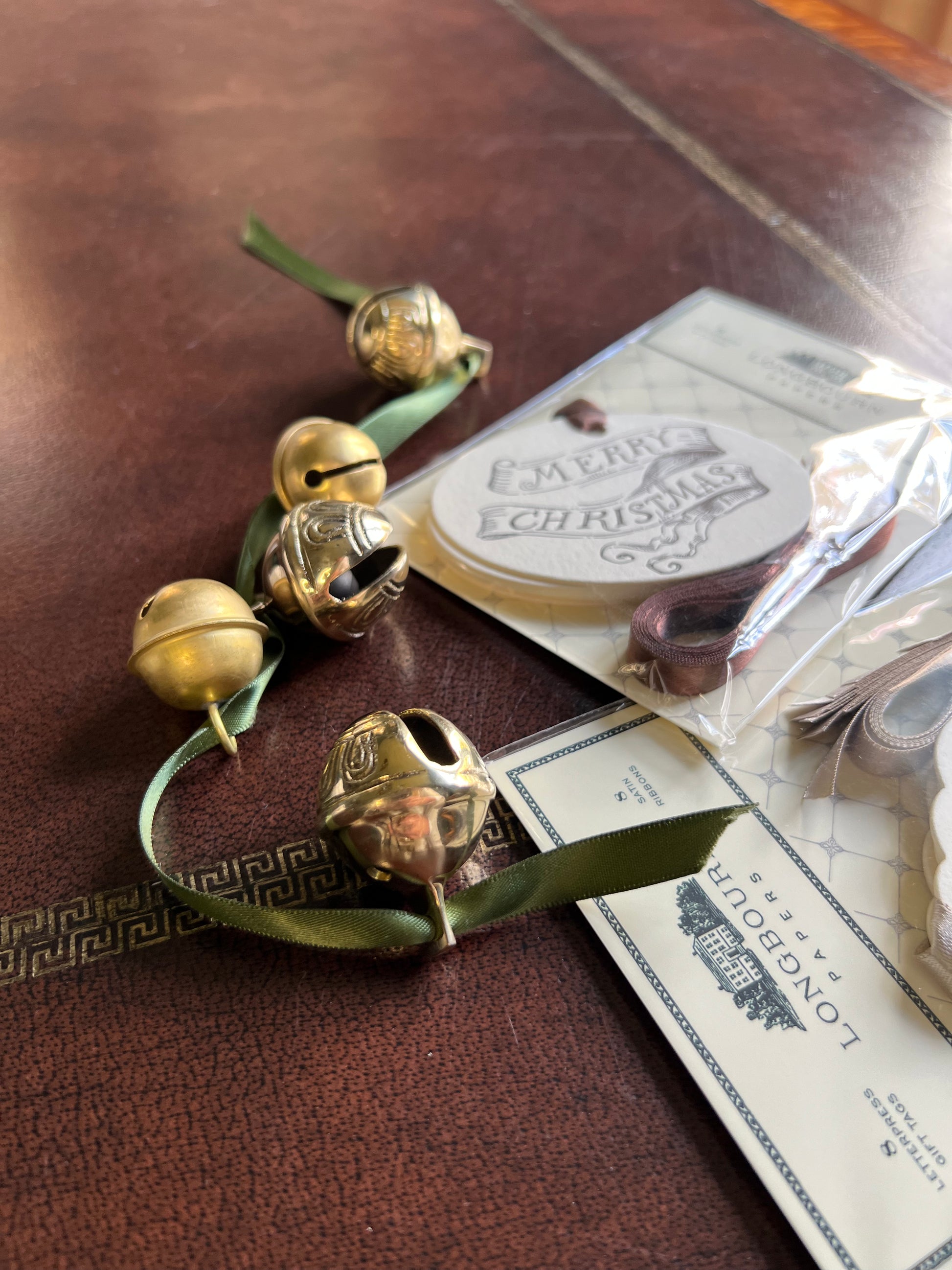 These solid brass heirloom quality embossed sleigh bells must be straight from the North Pole. Tied onto a special gift would take your presentation statement to the next level. Absolutely magical with a lovely little ring.