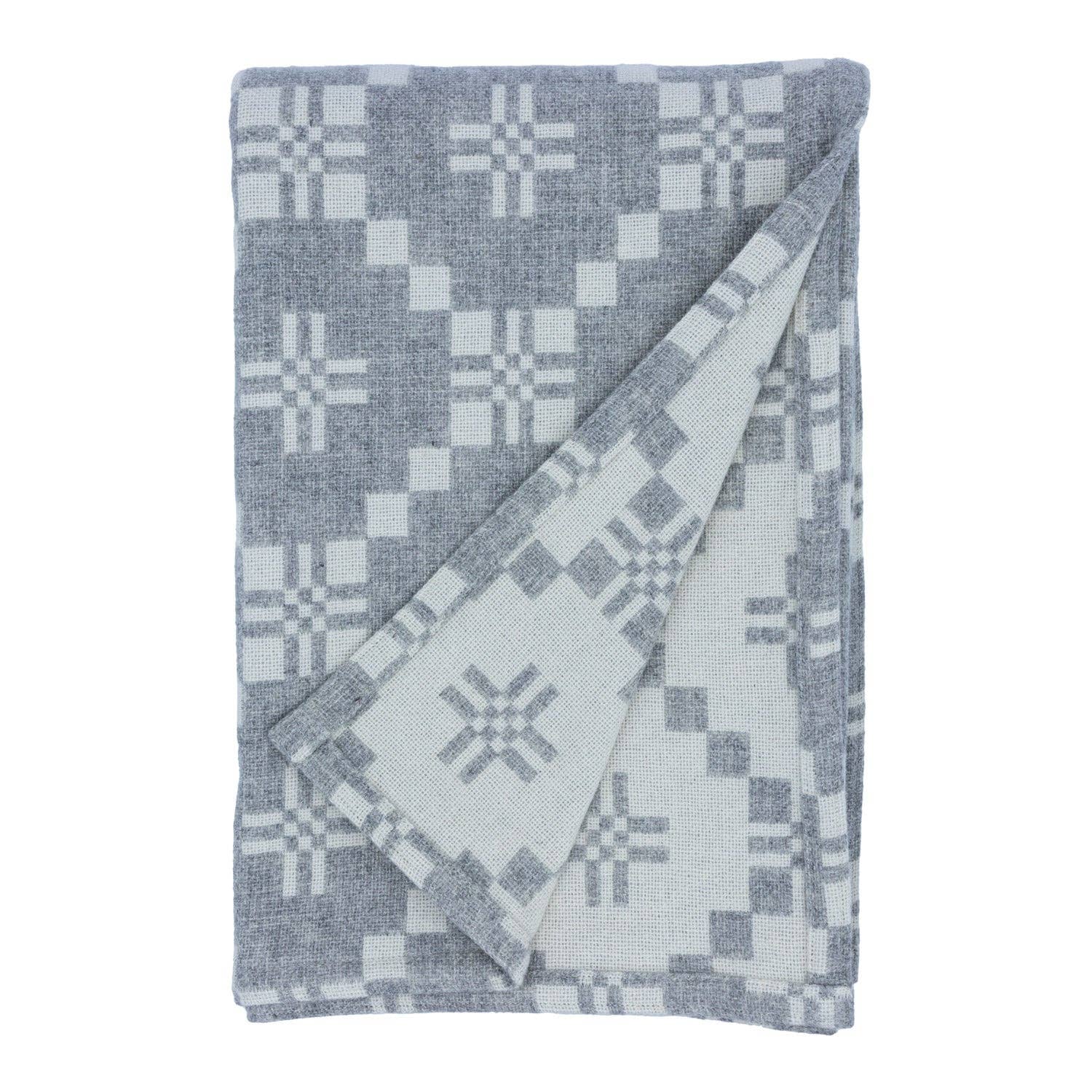 This weave is a modification of our original Vintage Star design, the inspiration came from early 18th Century Shaker weaving and the fabric displays the simplicity and bold reversibility of Shaker blankets. Howard Griffiths (second generation of the Griffiths family company) developed the design back in the 1980's. All our throws and blankets are finished with a simple hem so you can choose to display either side. It is woven from 100% pure new Wool so it feels just like vintage Welsh fabrics, wool has warmth weight and breathability but is still practical and easy to care for.