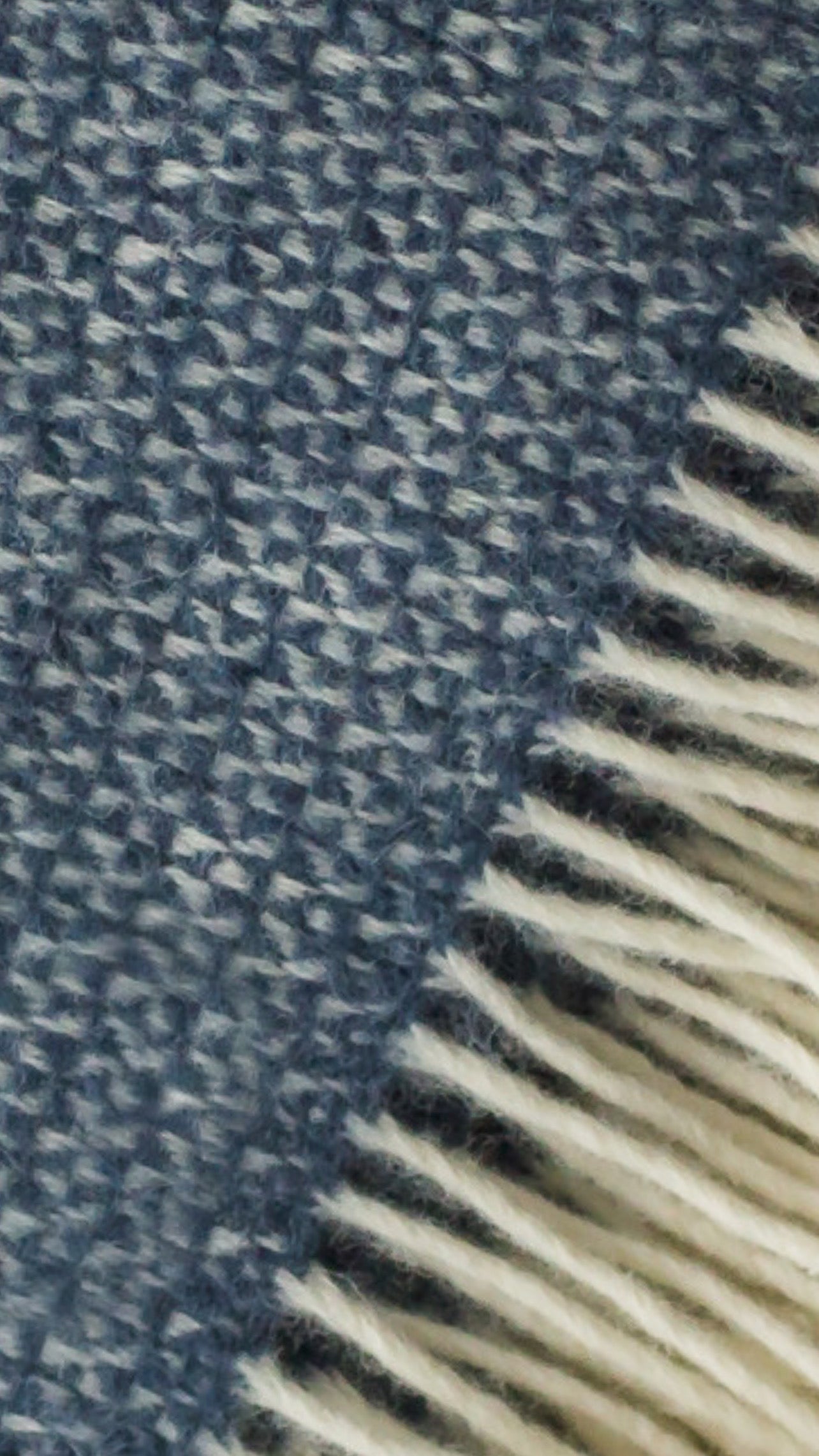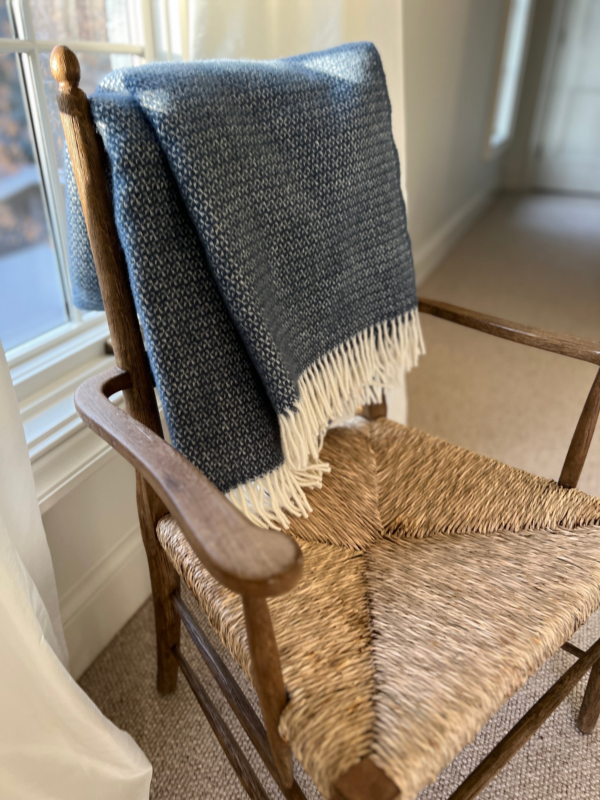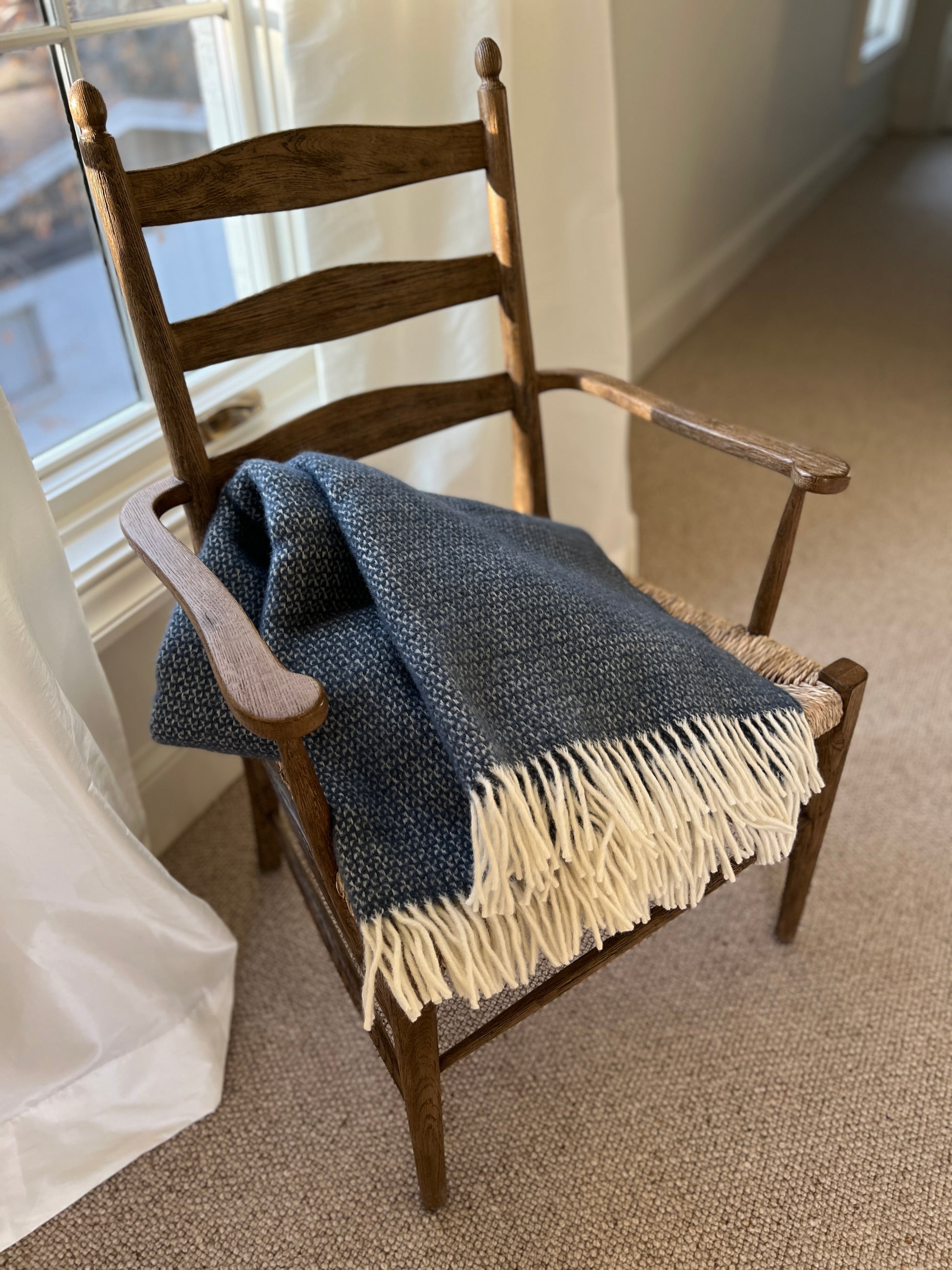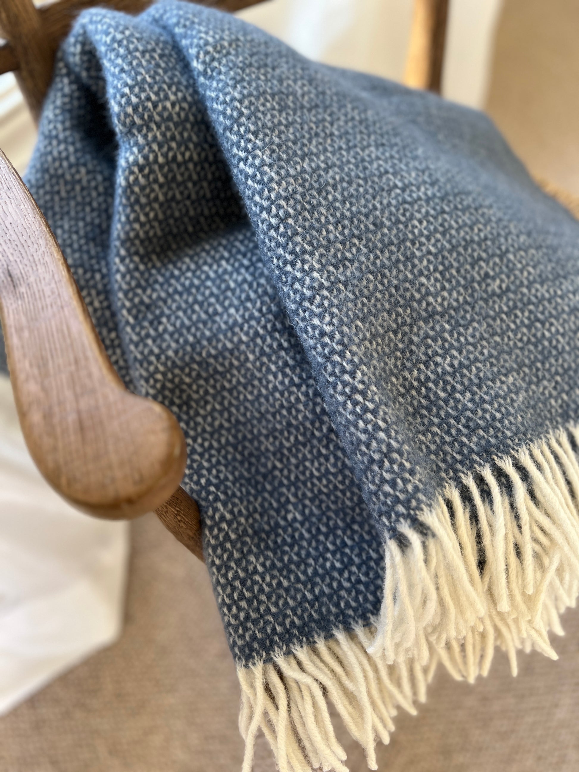 Gorgeous 100% Wool Throw from Britain. 55x72” Blue Slate Tweed with cream fringe.
