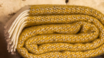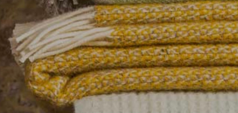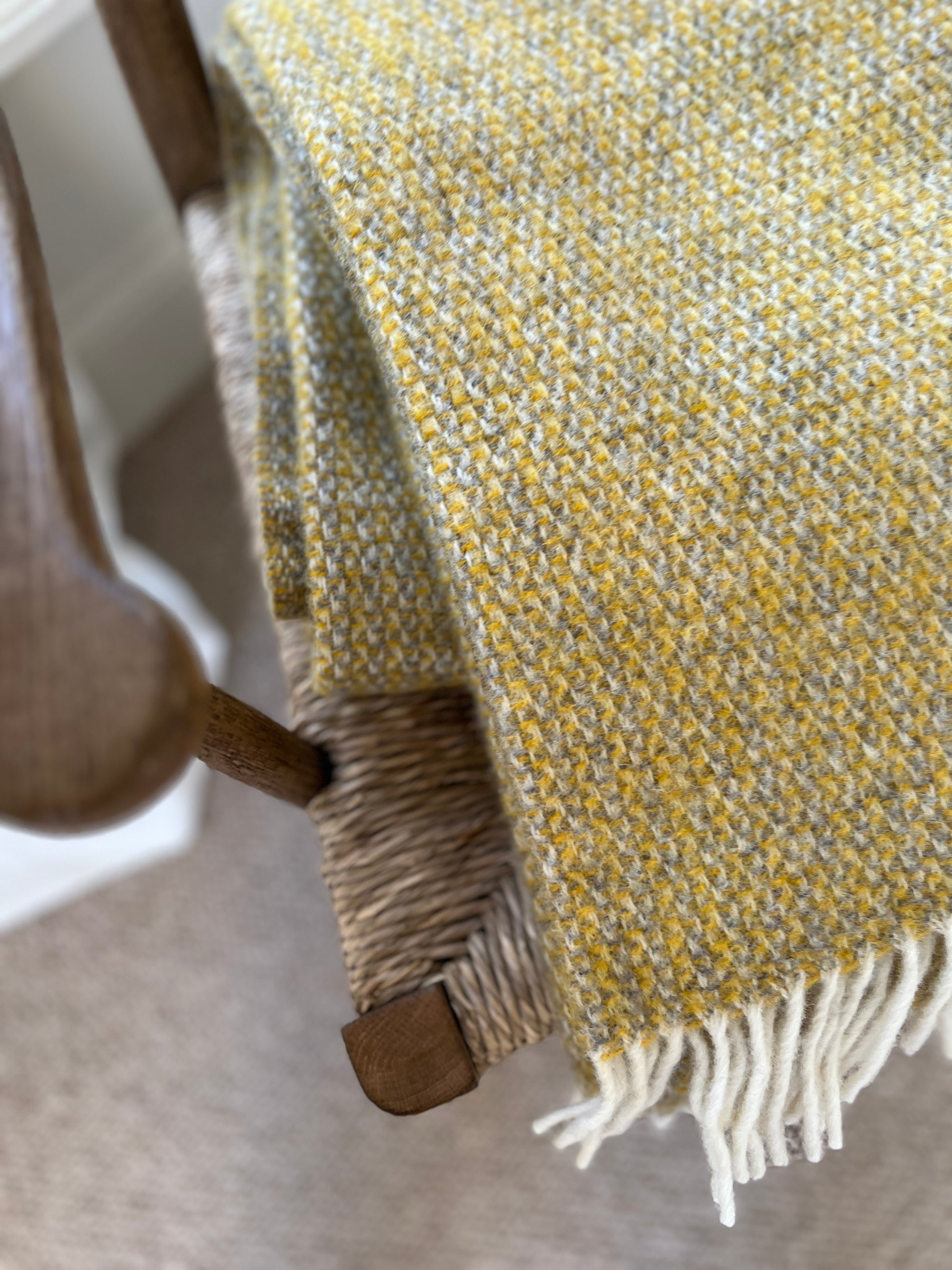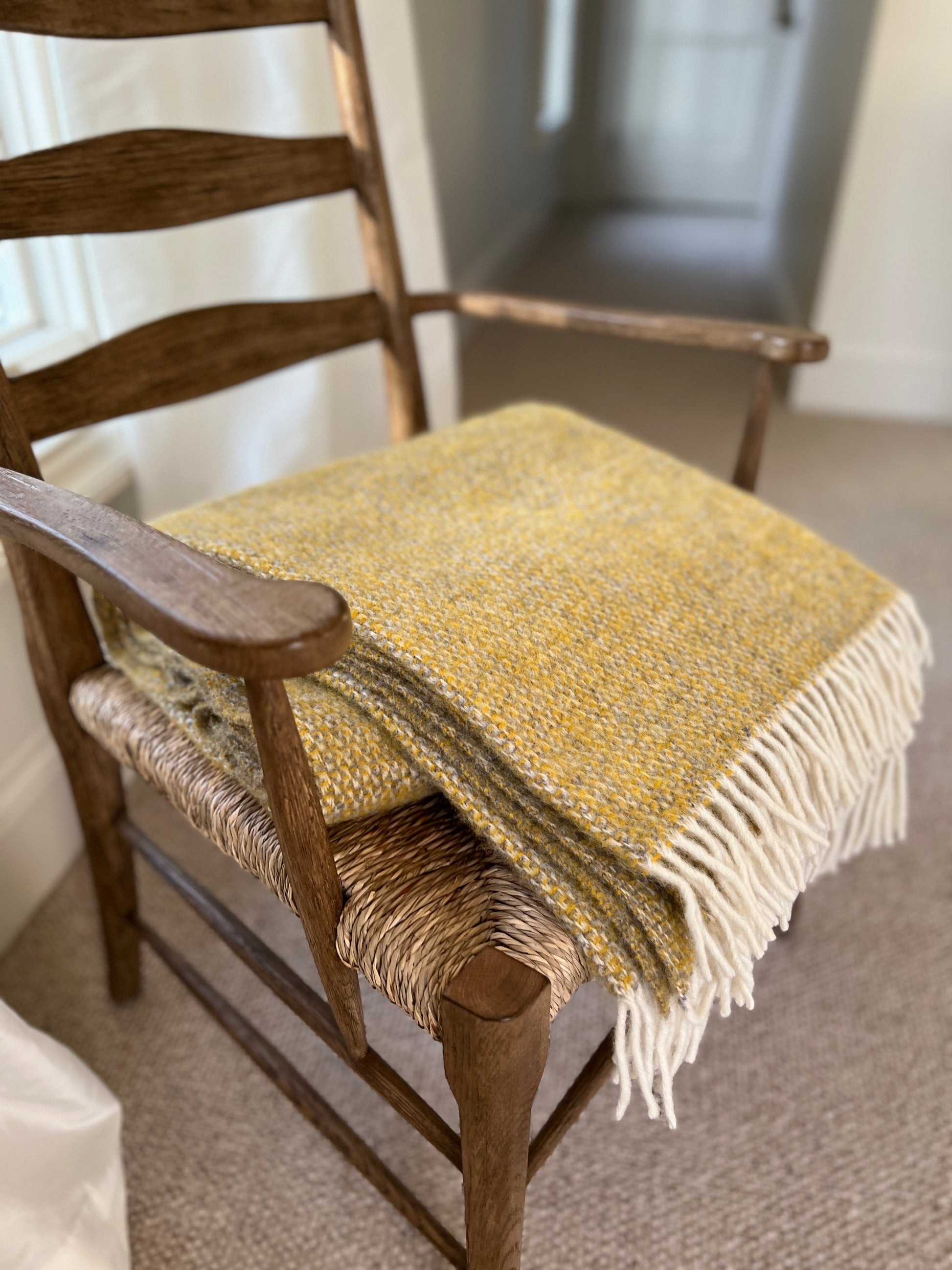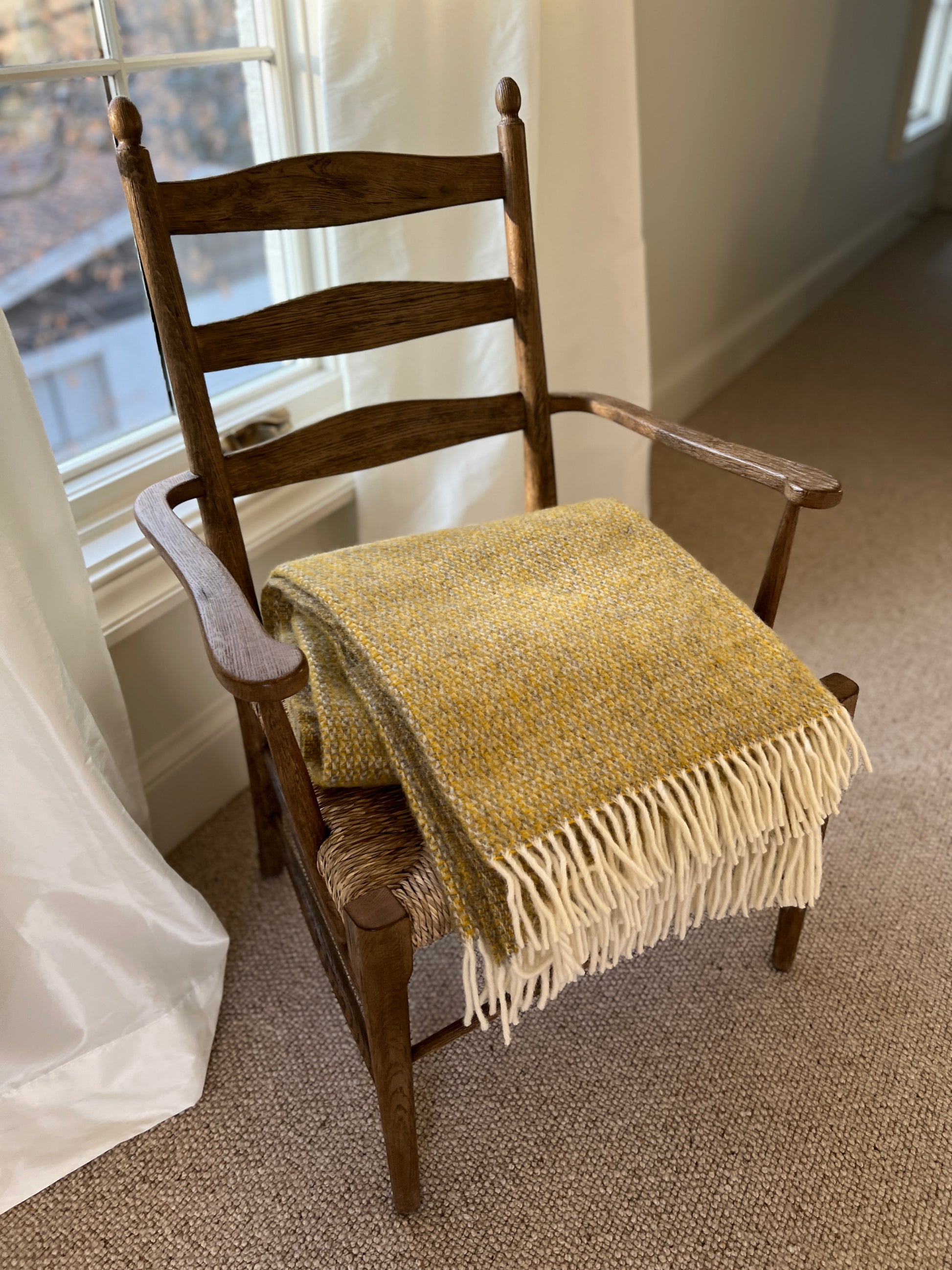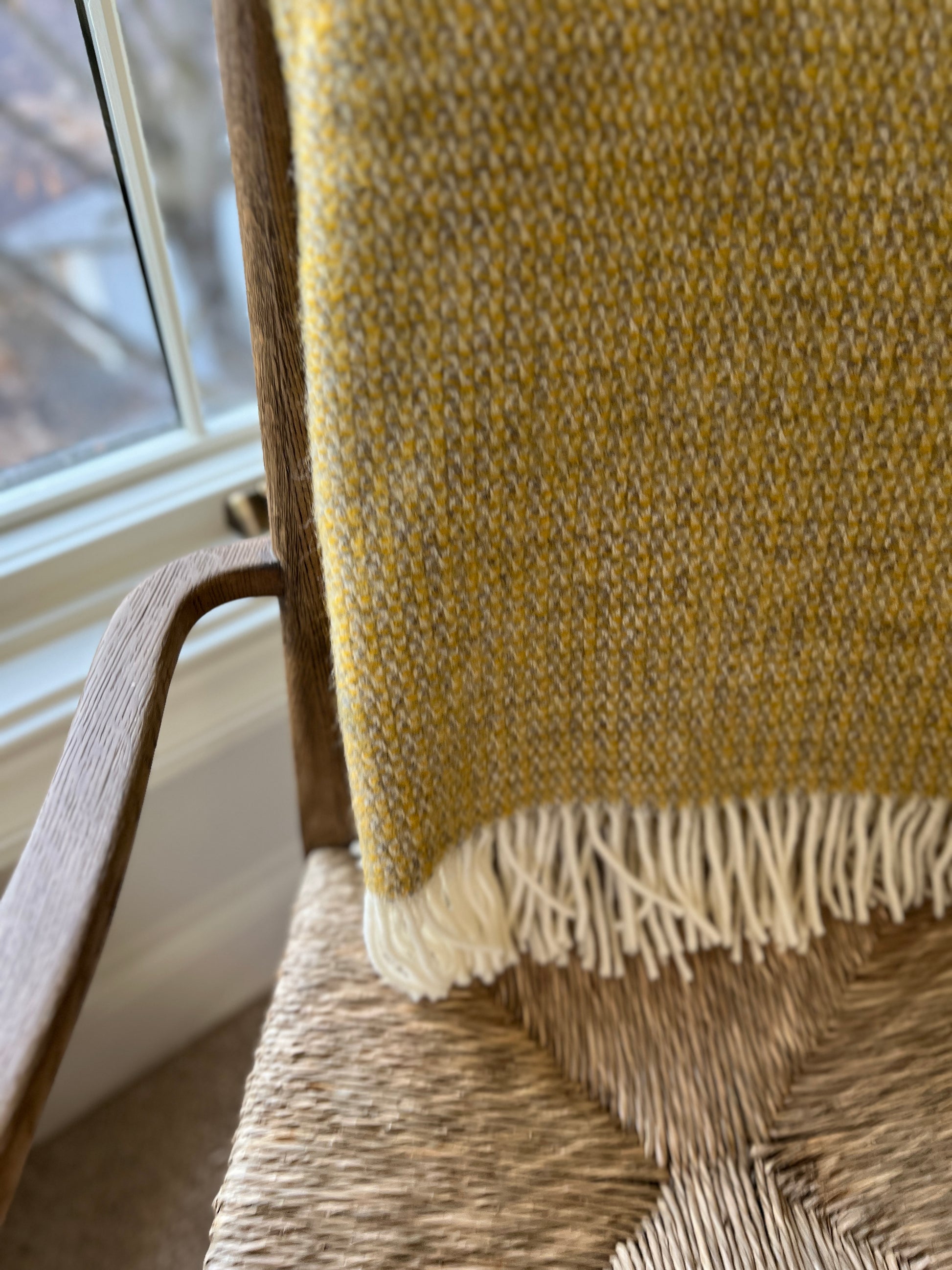 Gorgeous 100% Wool Throw from Britain. 55x72” Gold & Gray Tweed with cream fringe.